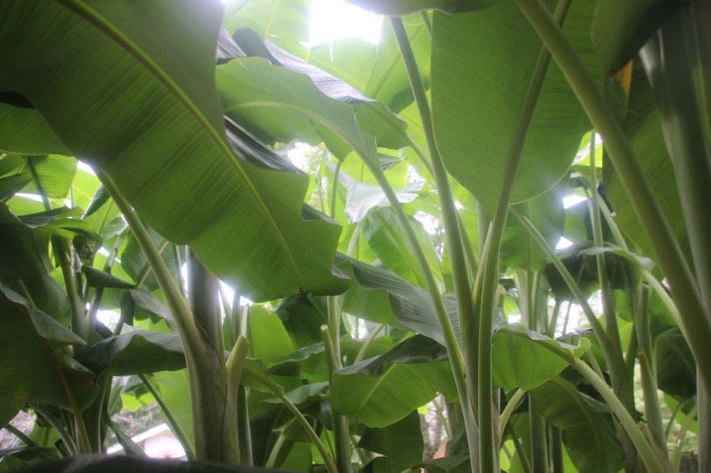 Zeta tattered the banana leaves until they look more like palm fronds.