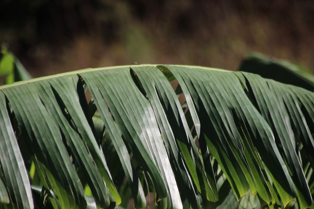 During storms the big leaves tatter along the veins to let the wind pass through.