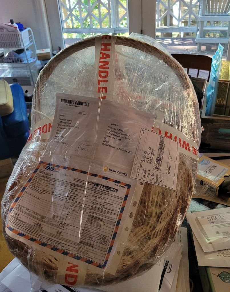 It was not an infant carrier. It was a flower harvesting basket from Ukraine.