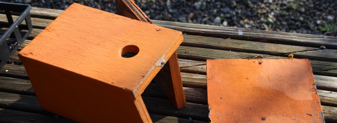 It finally dawned on me that the bluebird house attached to the deck pole just below where he kept landing had fallen apart over the winter.