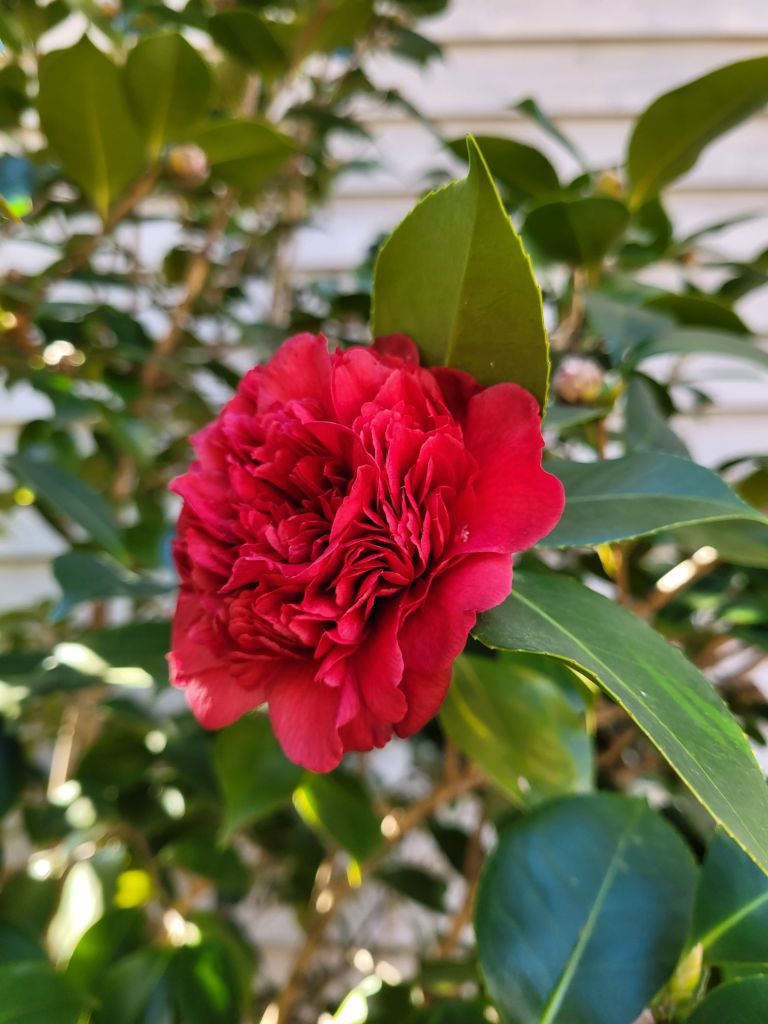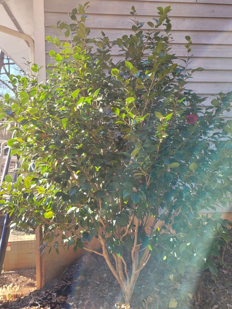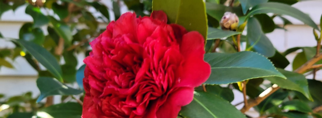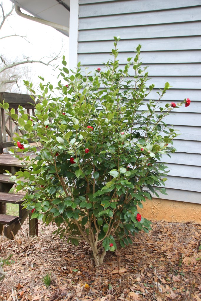 All I need is a tiny reminder of what is to come. These little signs of spring get me through the dark, short days. My Professor Sargeant Camellia japonica has sent out one perfect bloom from all of its hundreds of buds.