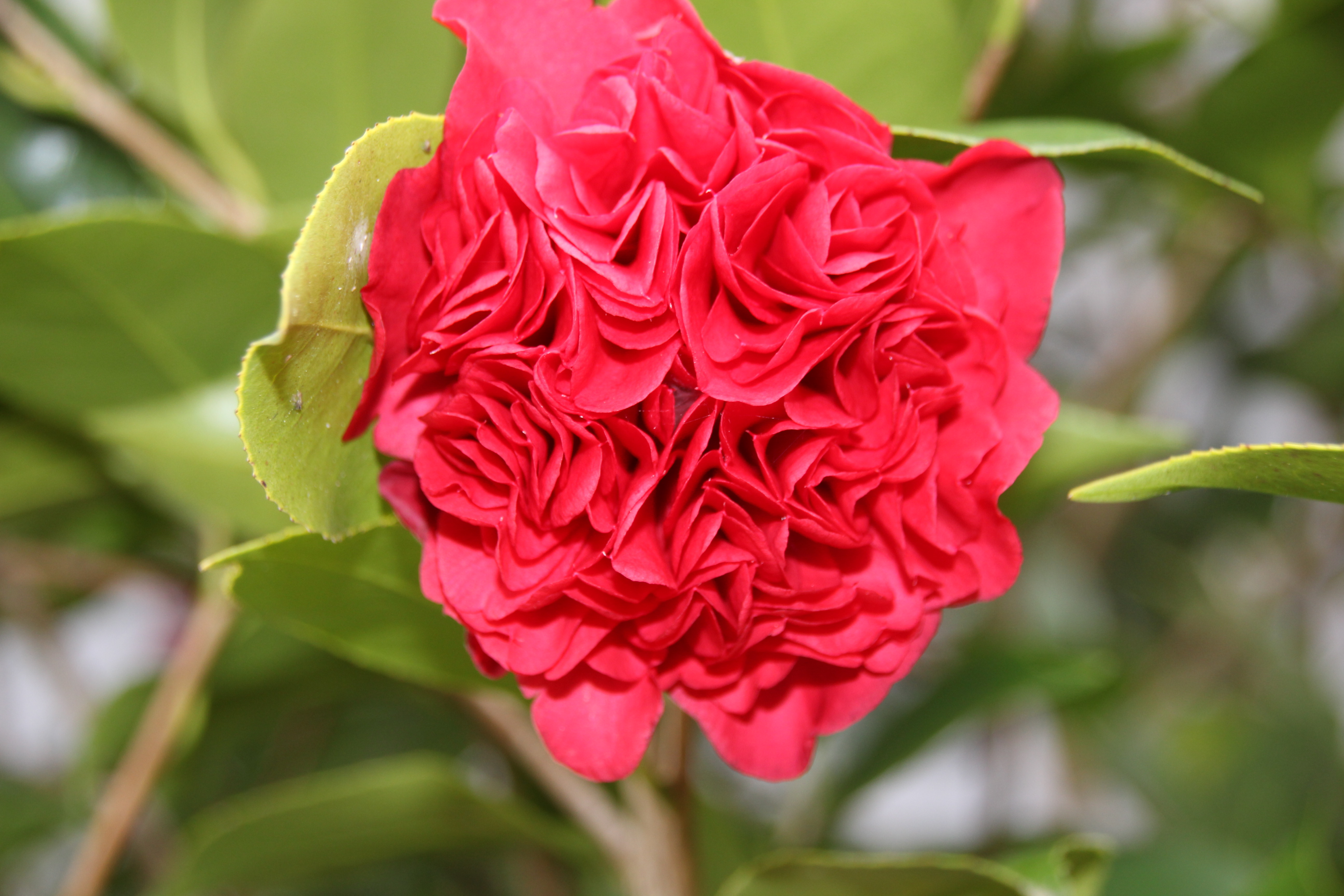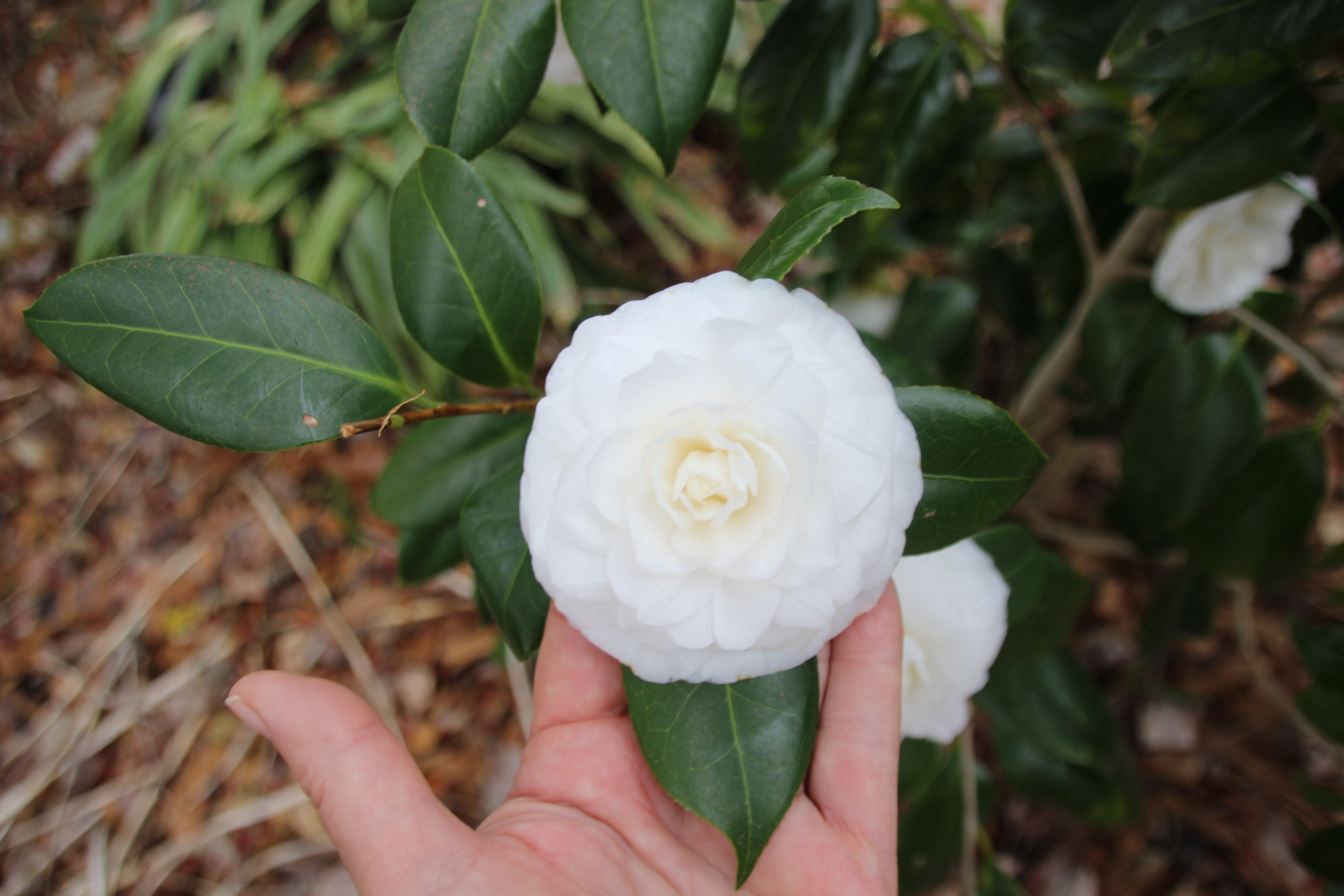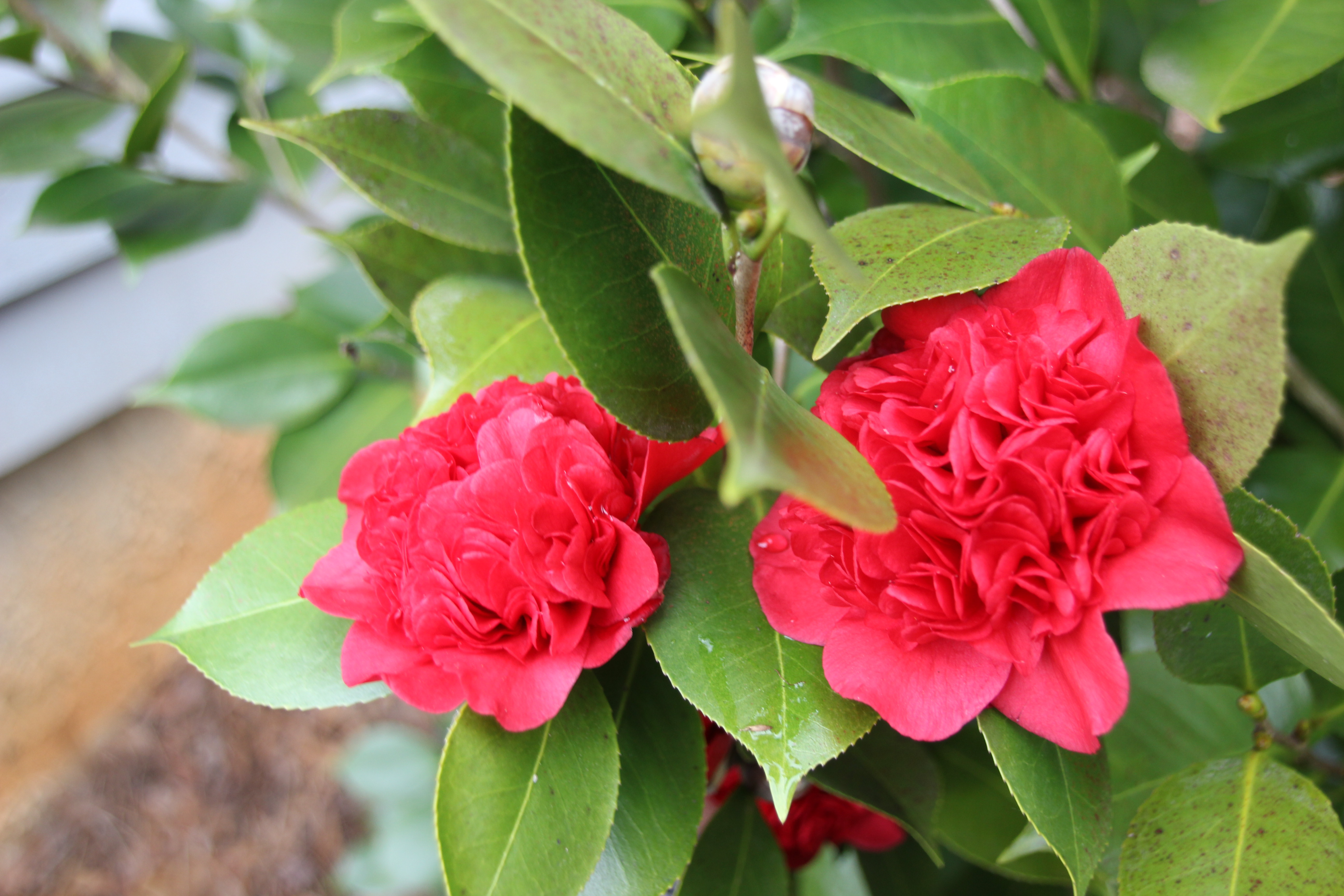 All I need is a tiny reminder of what is to come. These little signs of spring get me through the dark, short days. My Professor Sargeant Camellia japonica has sent out one perfect bloom from all of its hundreds of buds.