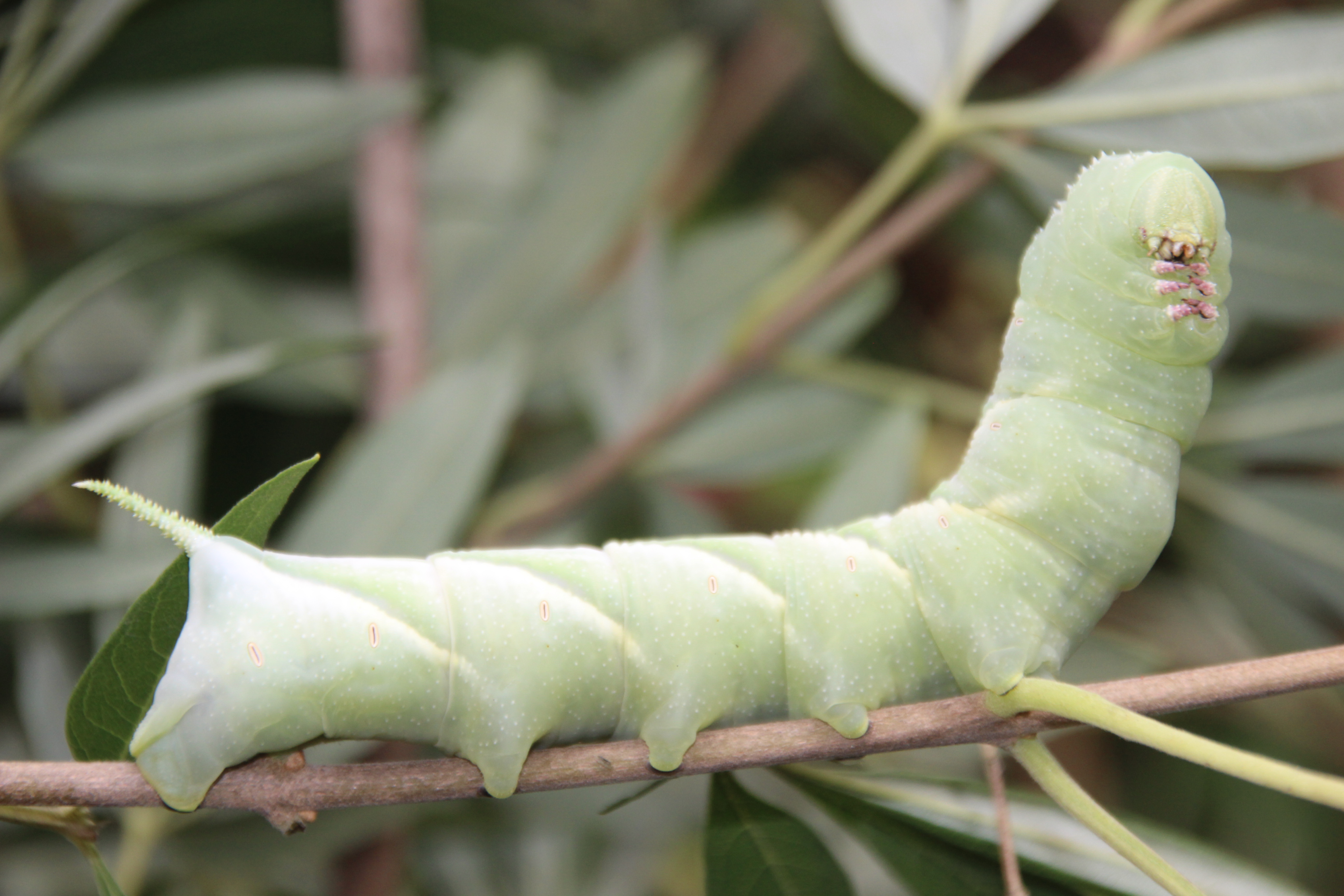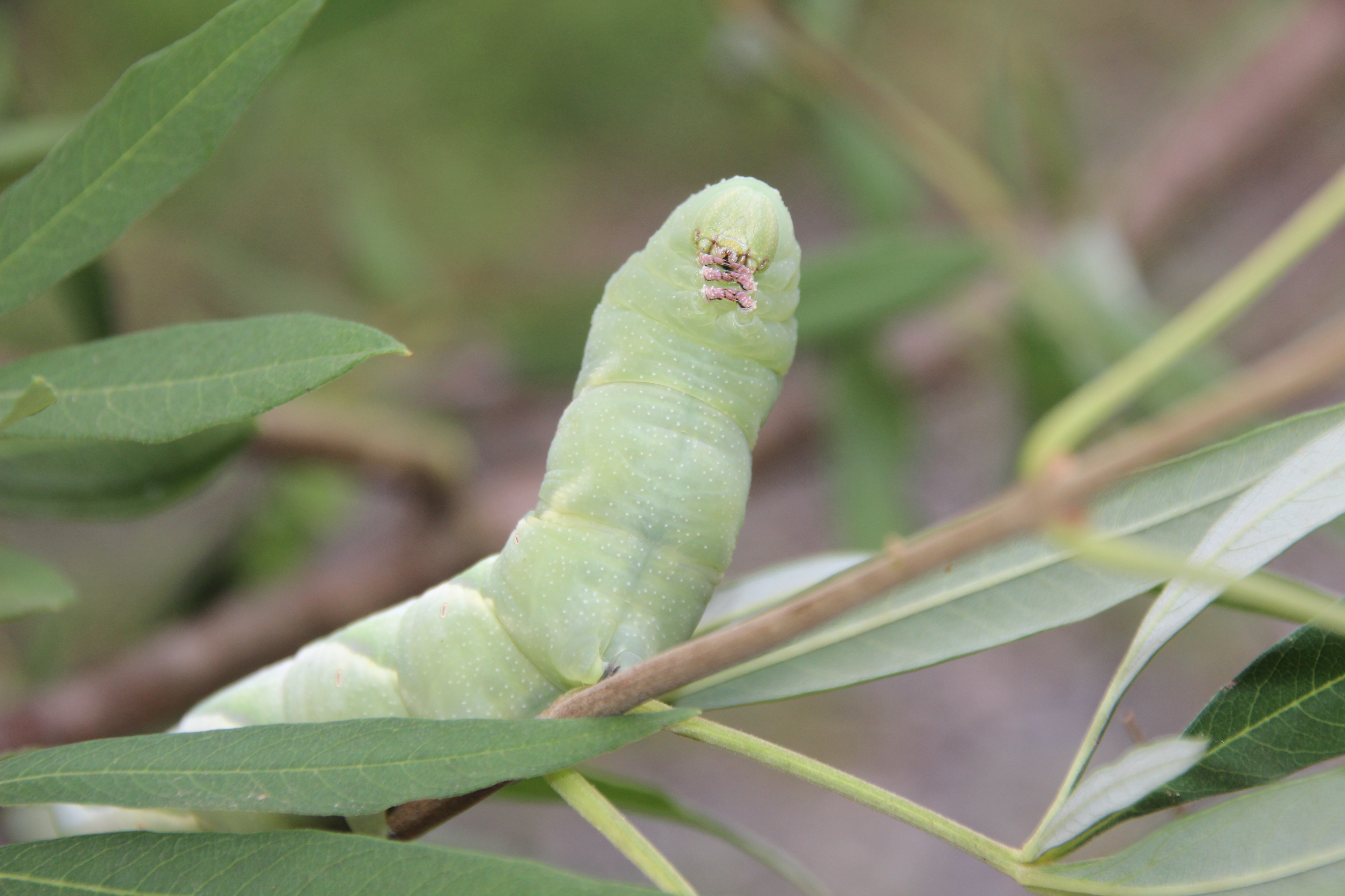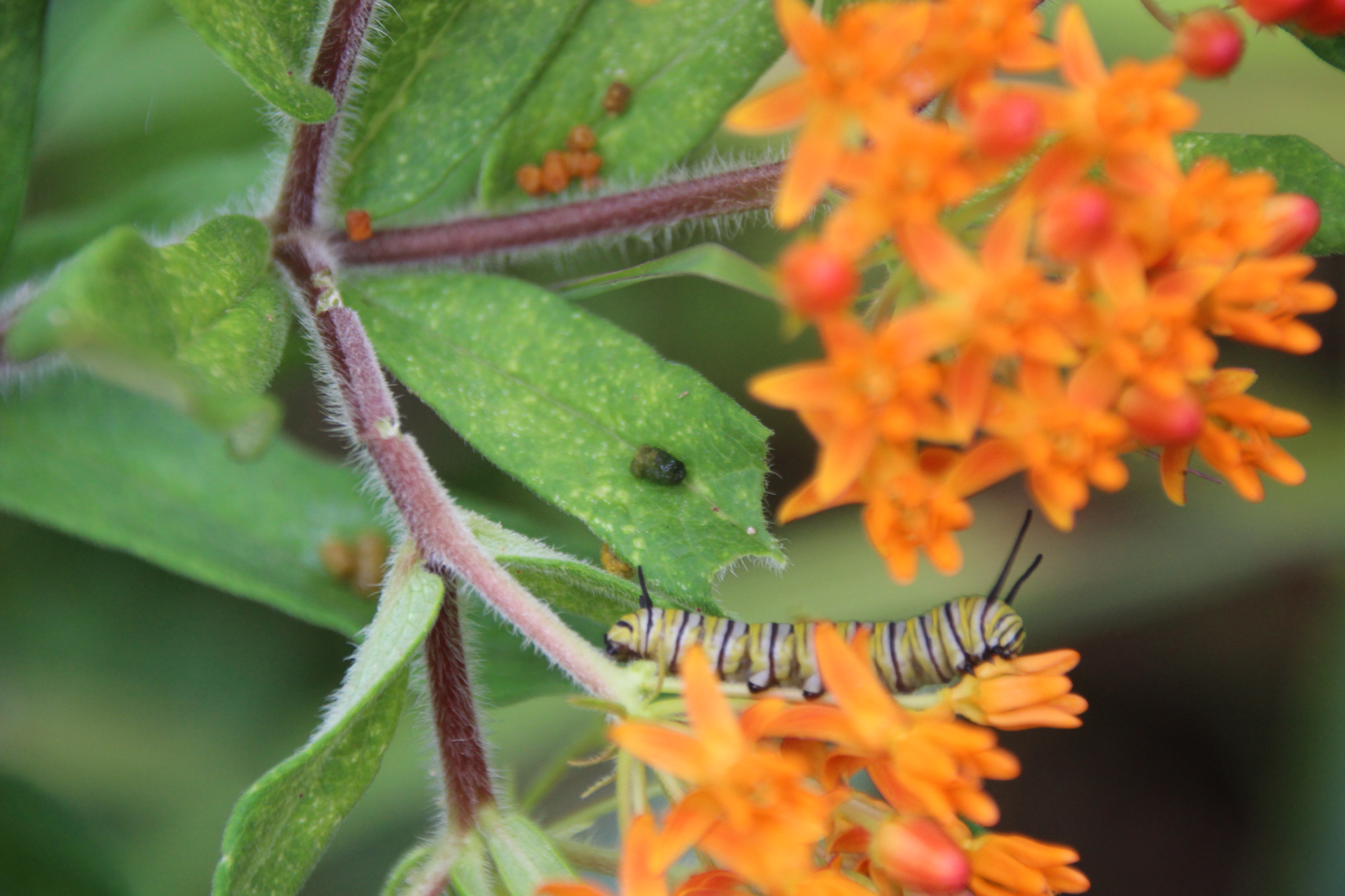 This caterpillar is hairy but NOT poisonous or stinging like many that have bristles/setae. Its best not to pick the bristly ones up. Some of the cutest ones give painful stings.