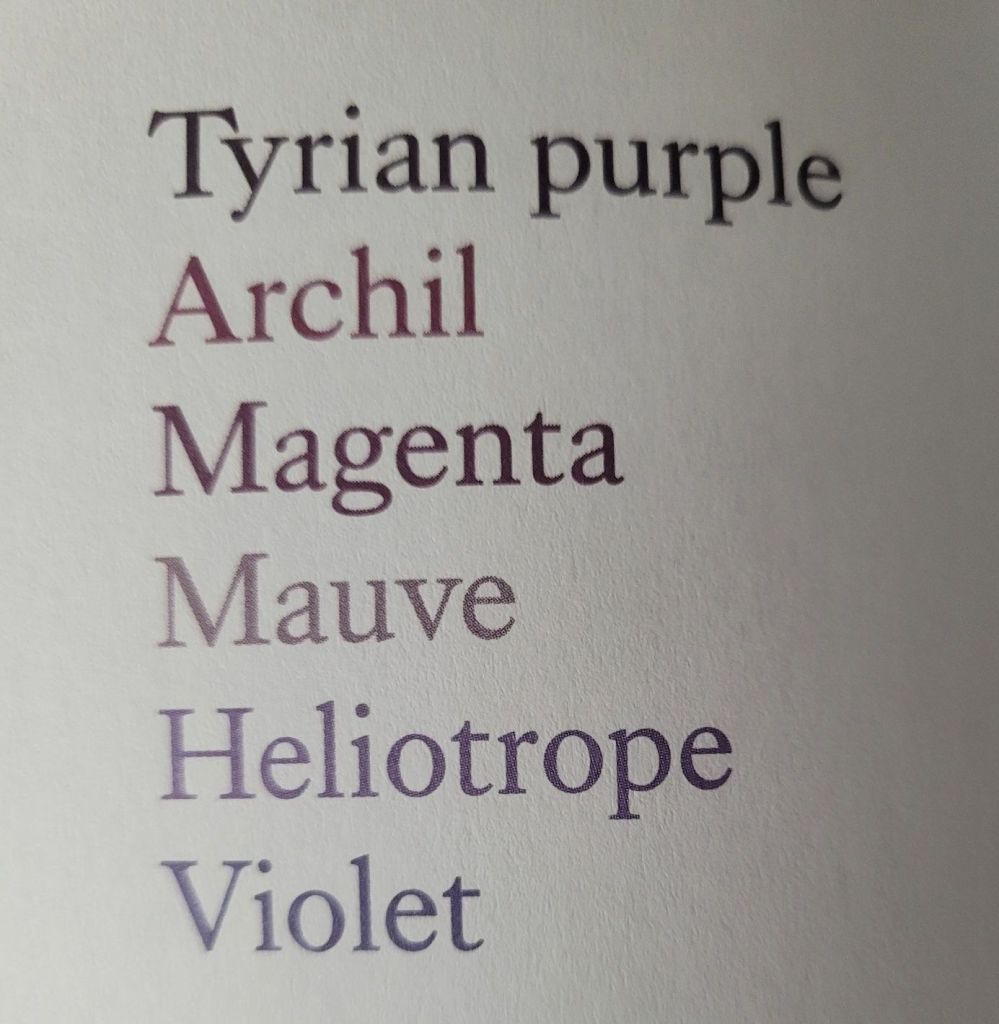 Who knew there were so many purples. Each one has several pages of history and descriptions in how the hue was made.