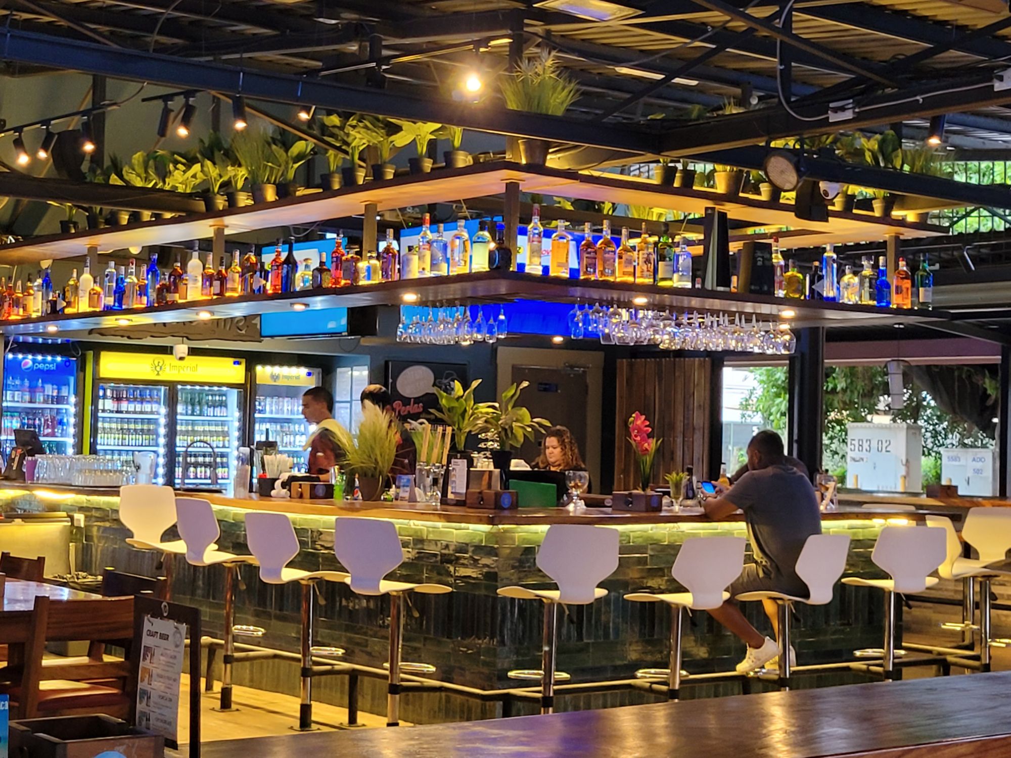 Great food many televisions and loud. Eat on the porch.
