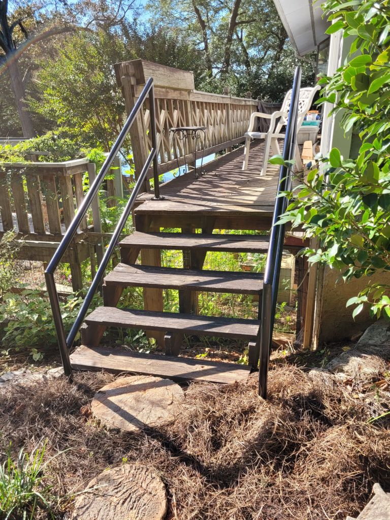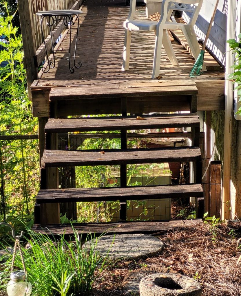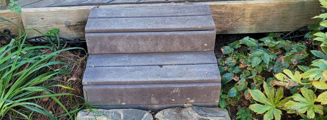 The dog steps have had a serious upgrade. These steps were thrown up so our two dogs could lie on the deck and watch us through the glass doors. These were no doubt dangerous.