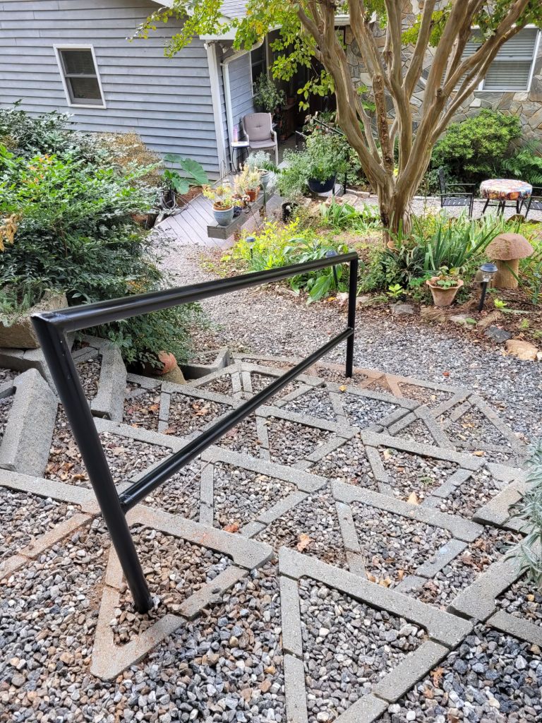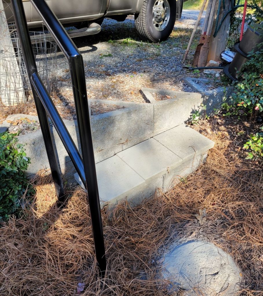We all know I need these rails now that I wobble and fall down. Crown Fence of Statesville had to custom make each one. It was a small job, so each set was installed whenever that piece was finished.