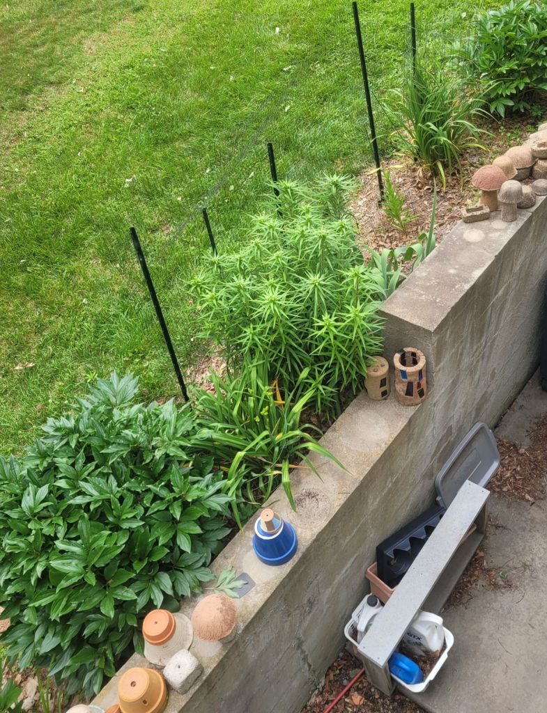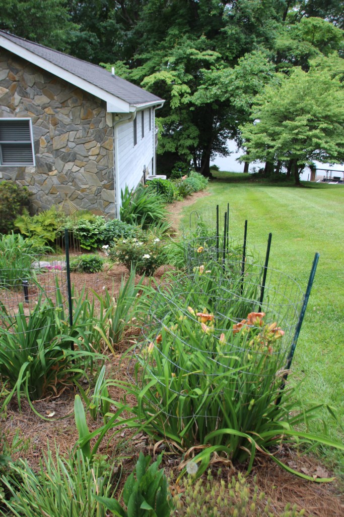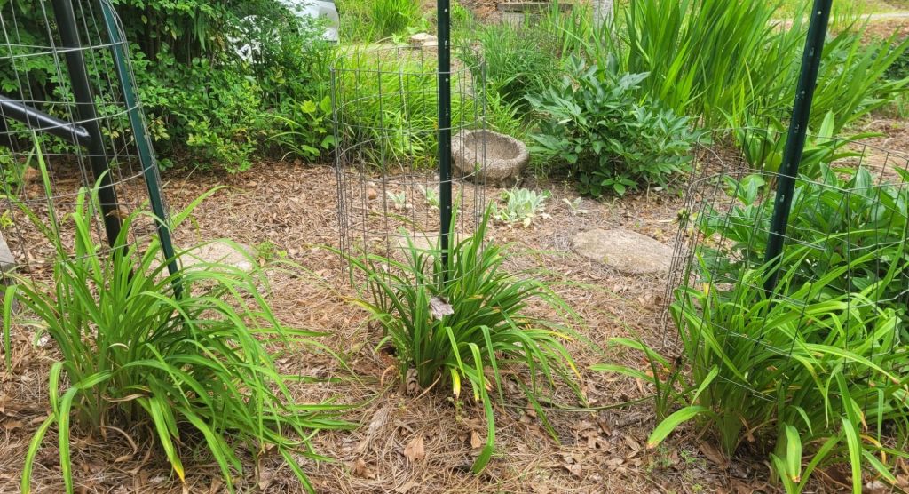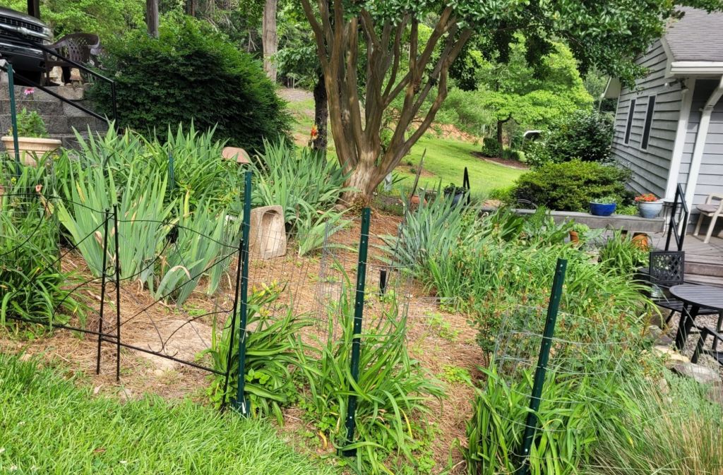 It is October 21 today. Mr. Flower just sent me this photo of one of the daylilies. This one is in the Bunny Yard, which no longer has bunnies. Instead it is visited by the neighborhood ground hog. The fence keeps out the deer herd.