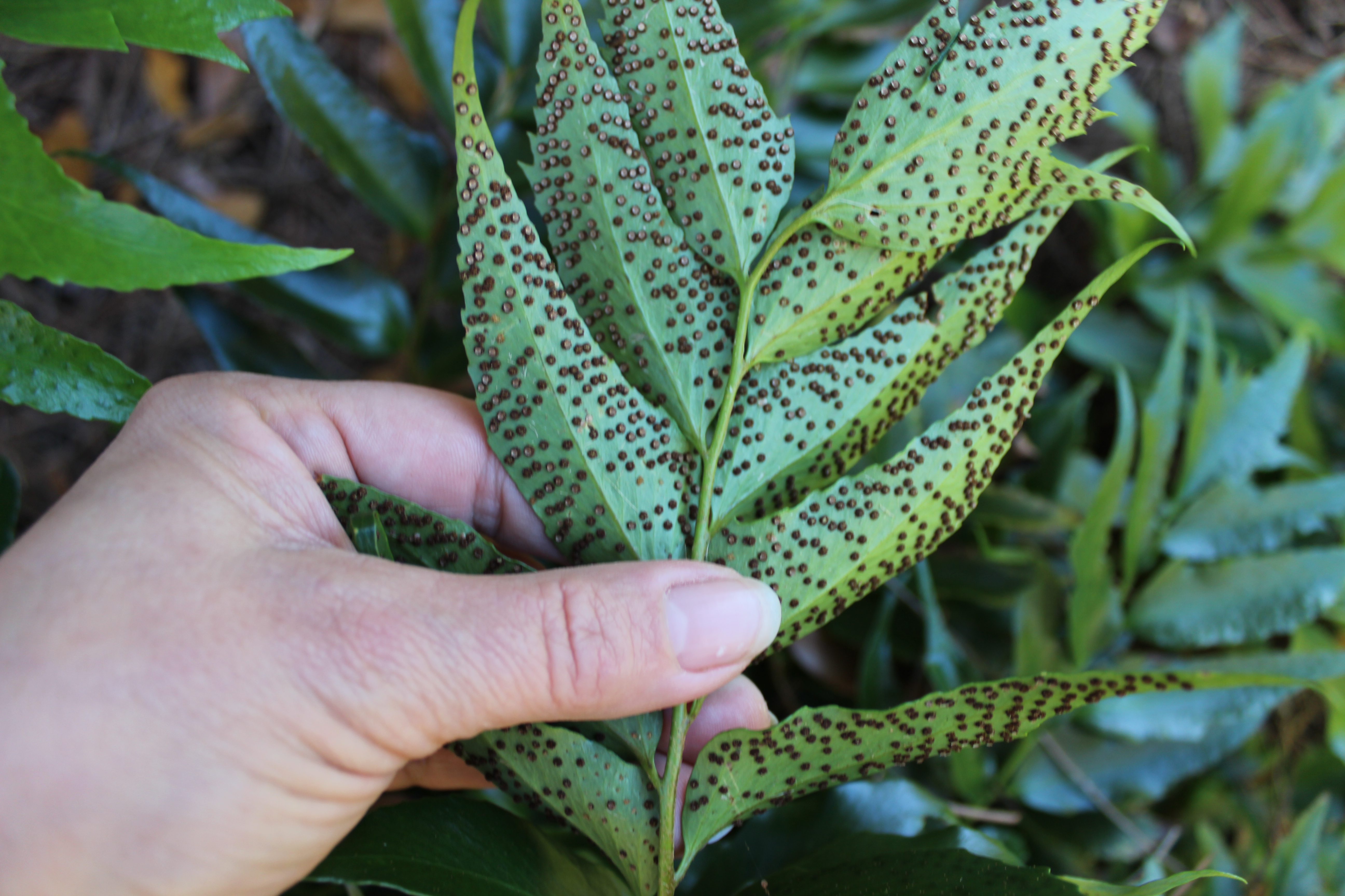 Here is one sorus from the Japanese Holly fern under the microscope.
