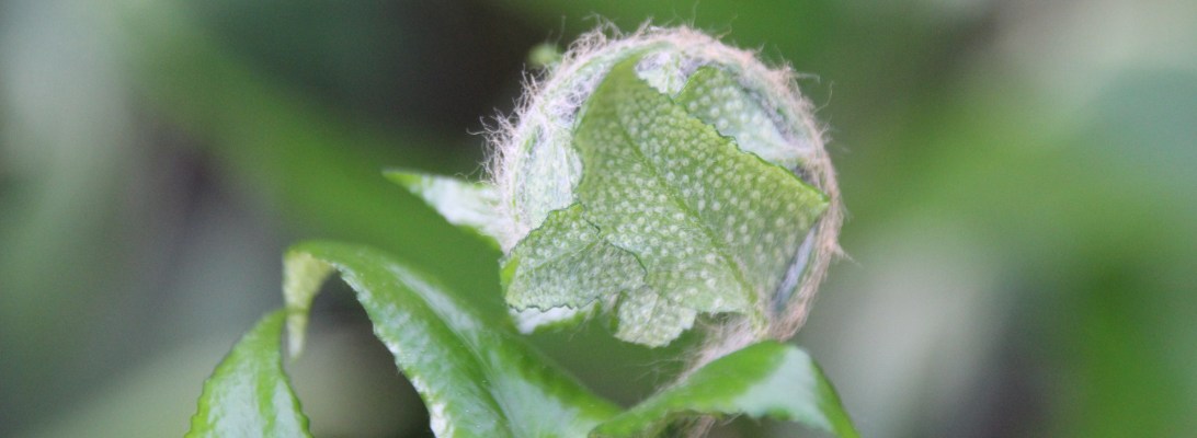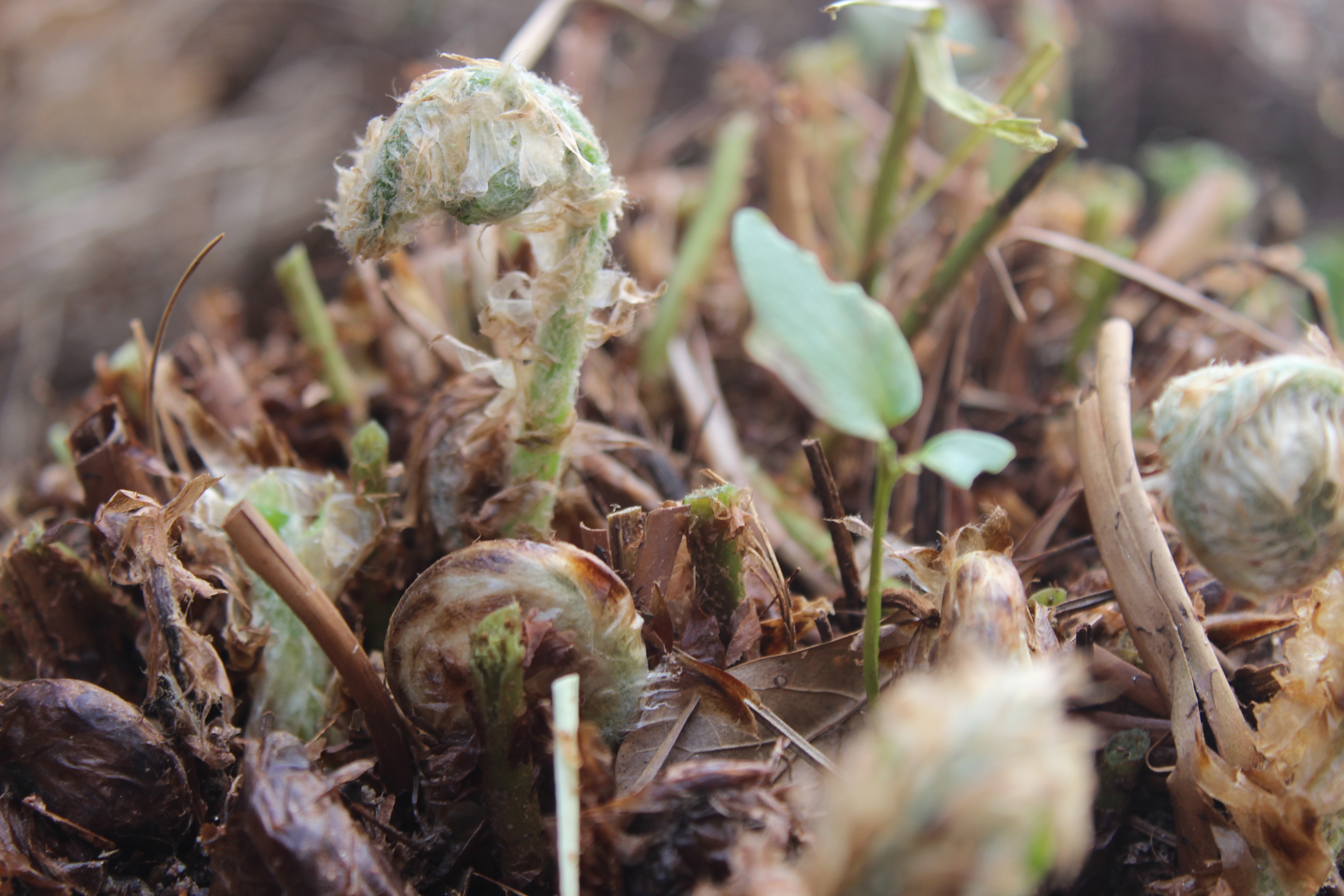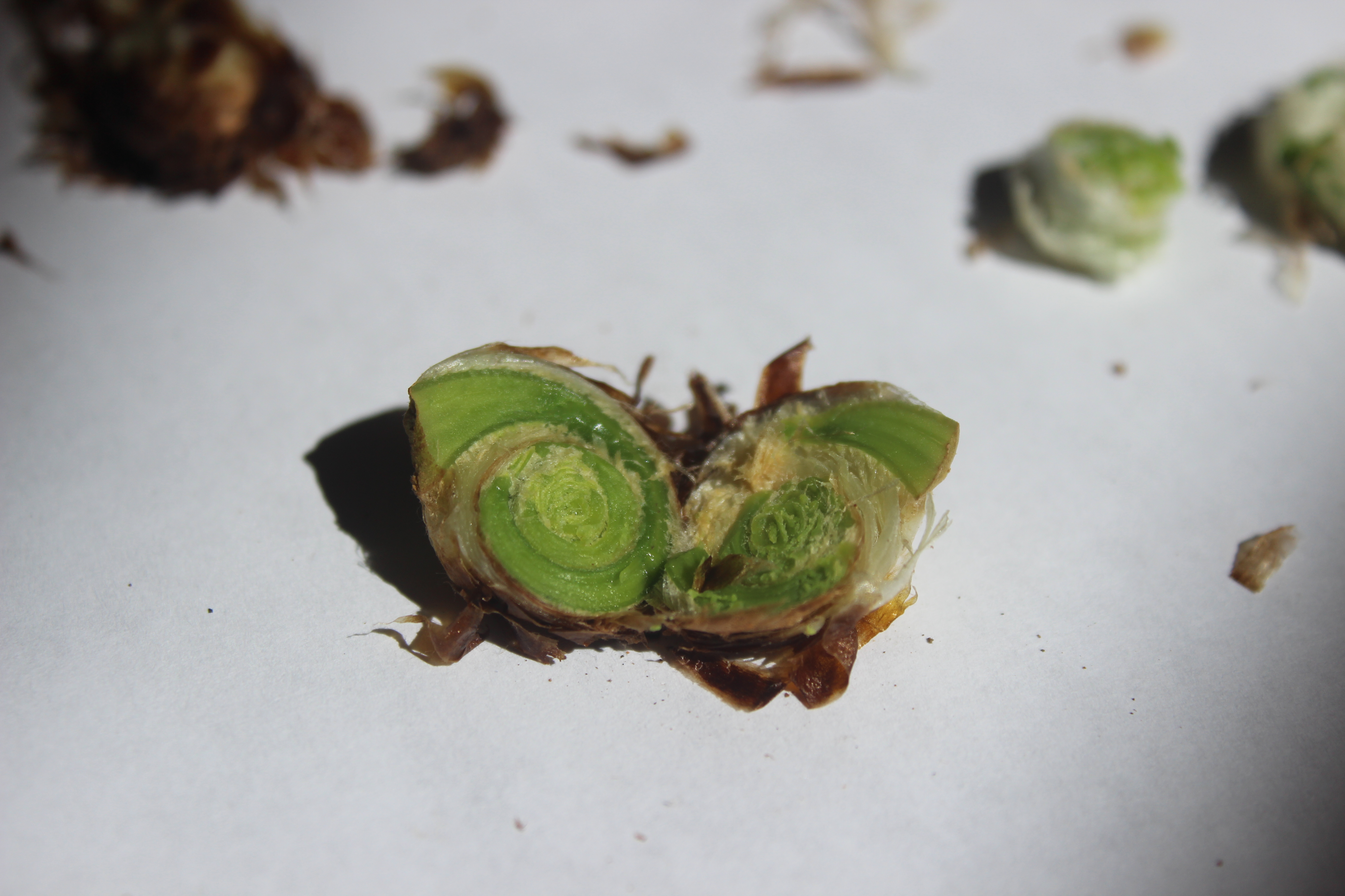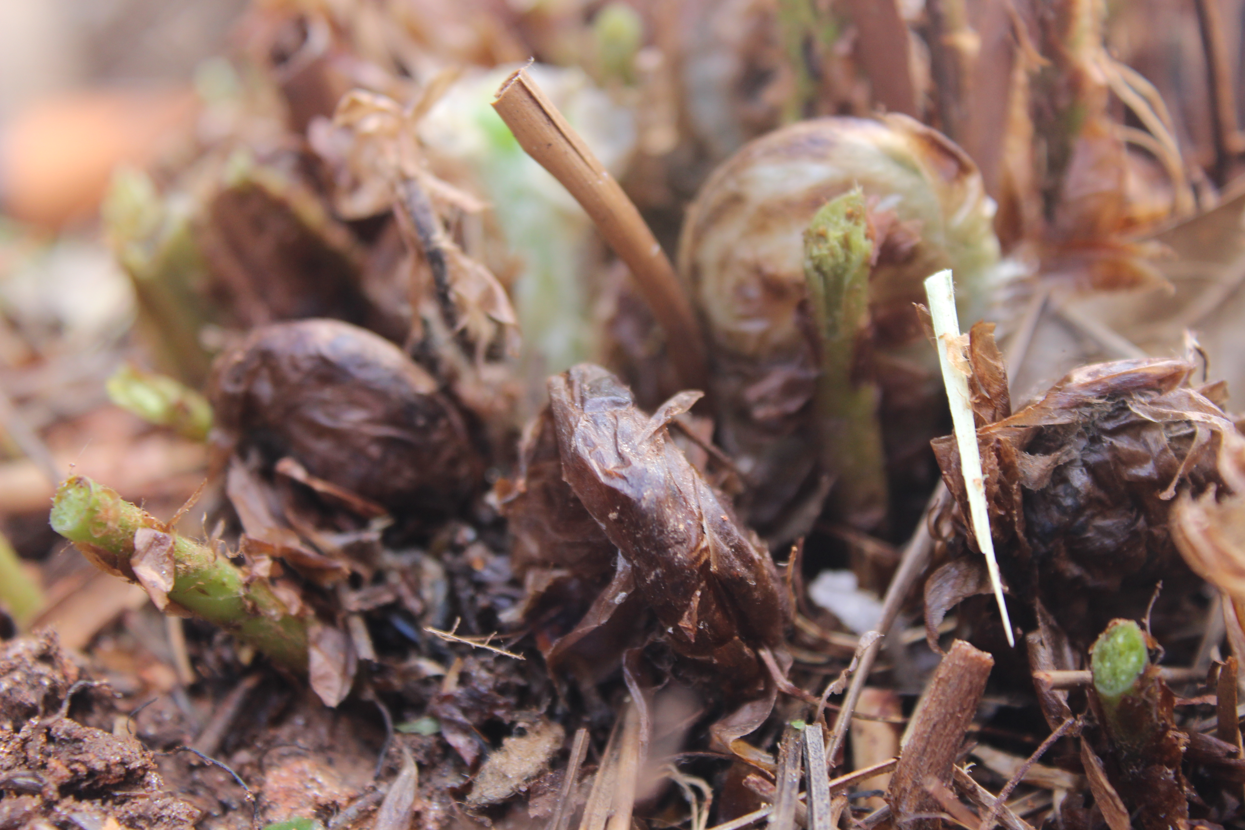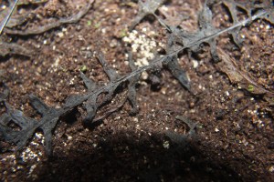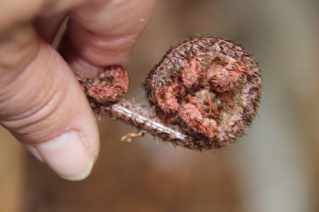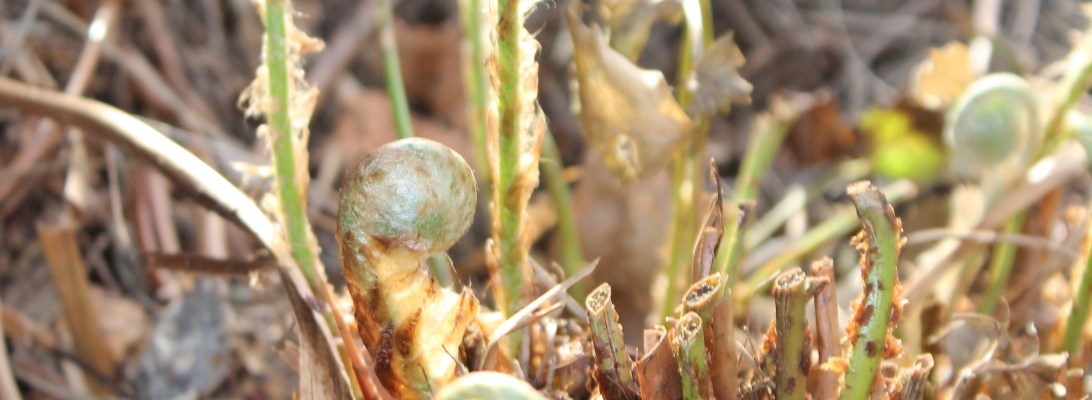 Sensitive fern/Onoclea sensibilis sends up its own spores on a stick. These are referred to as beads.