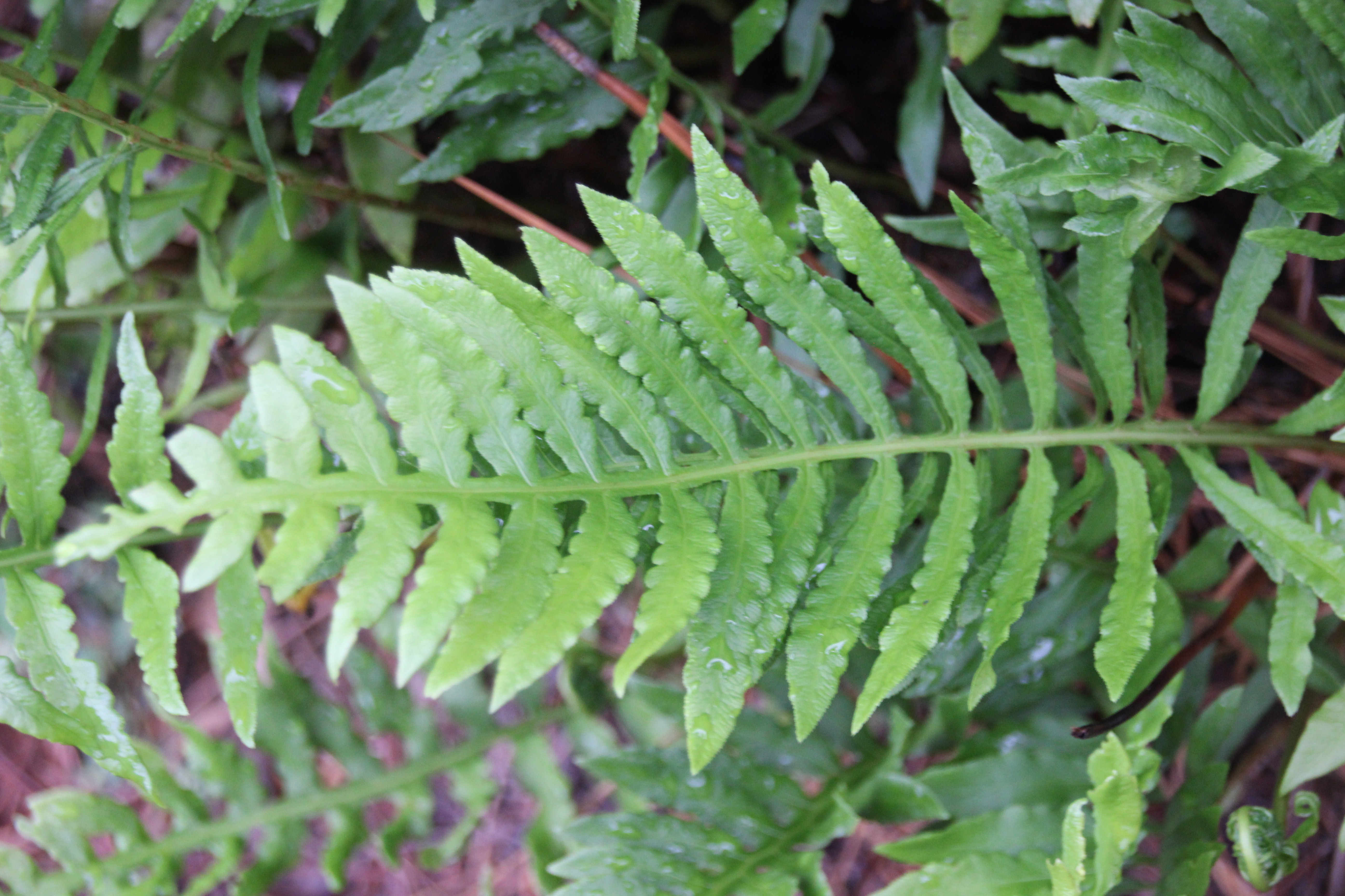 Chain fern/ Woodwardia areolata has a separate spore bearing structure, also.