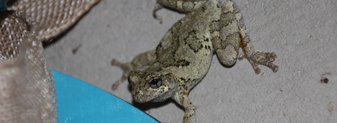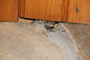 I had to follow the sound, which was coming from behind a sign on the porch.