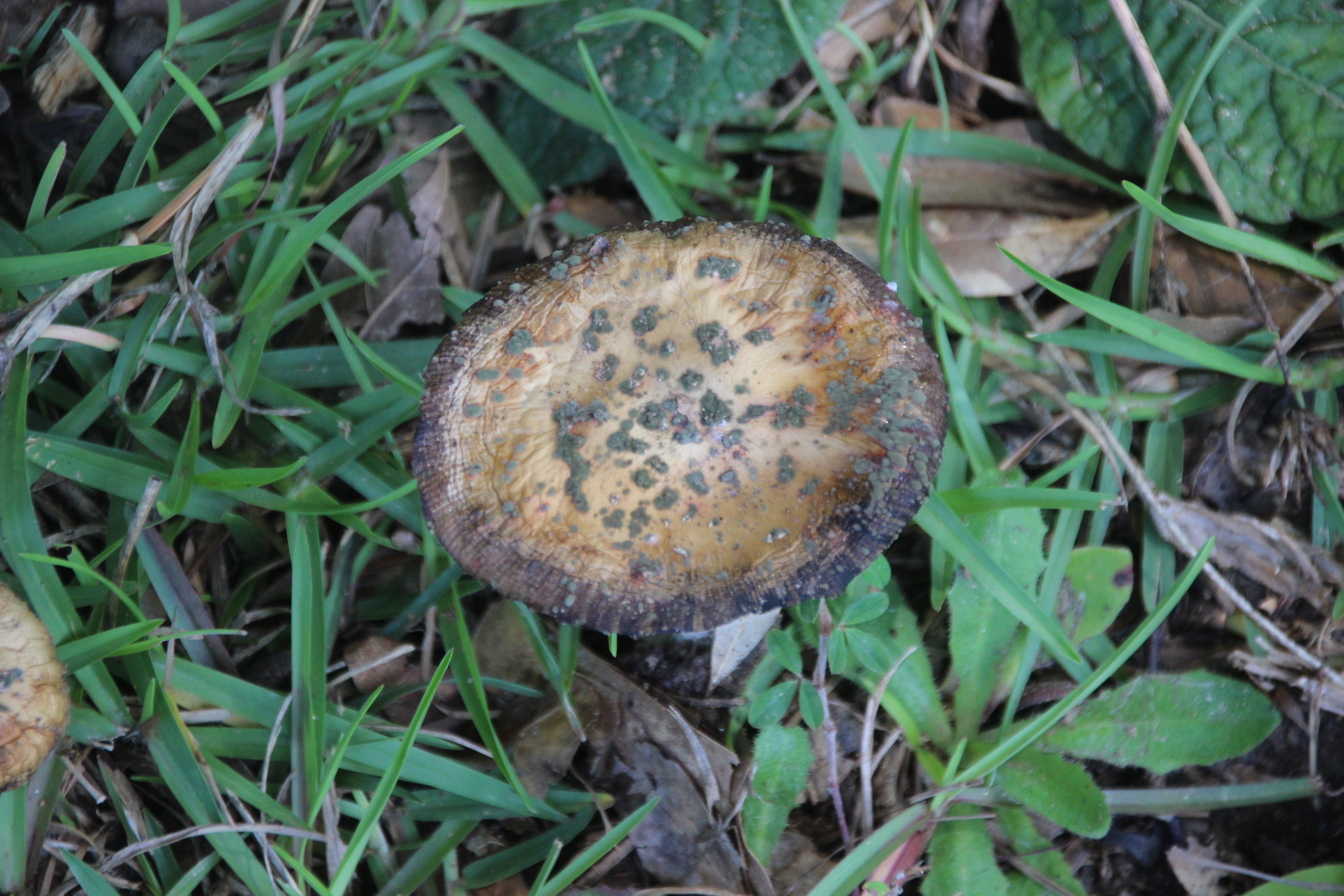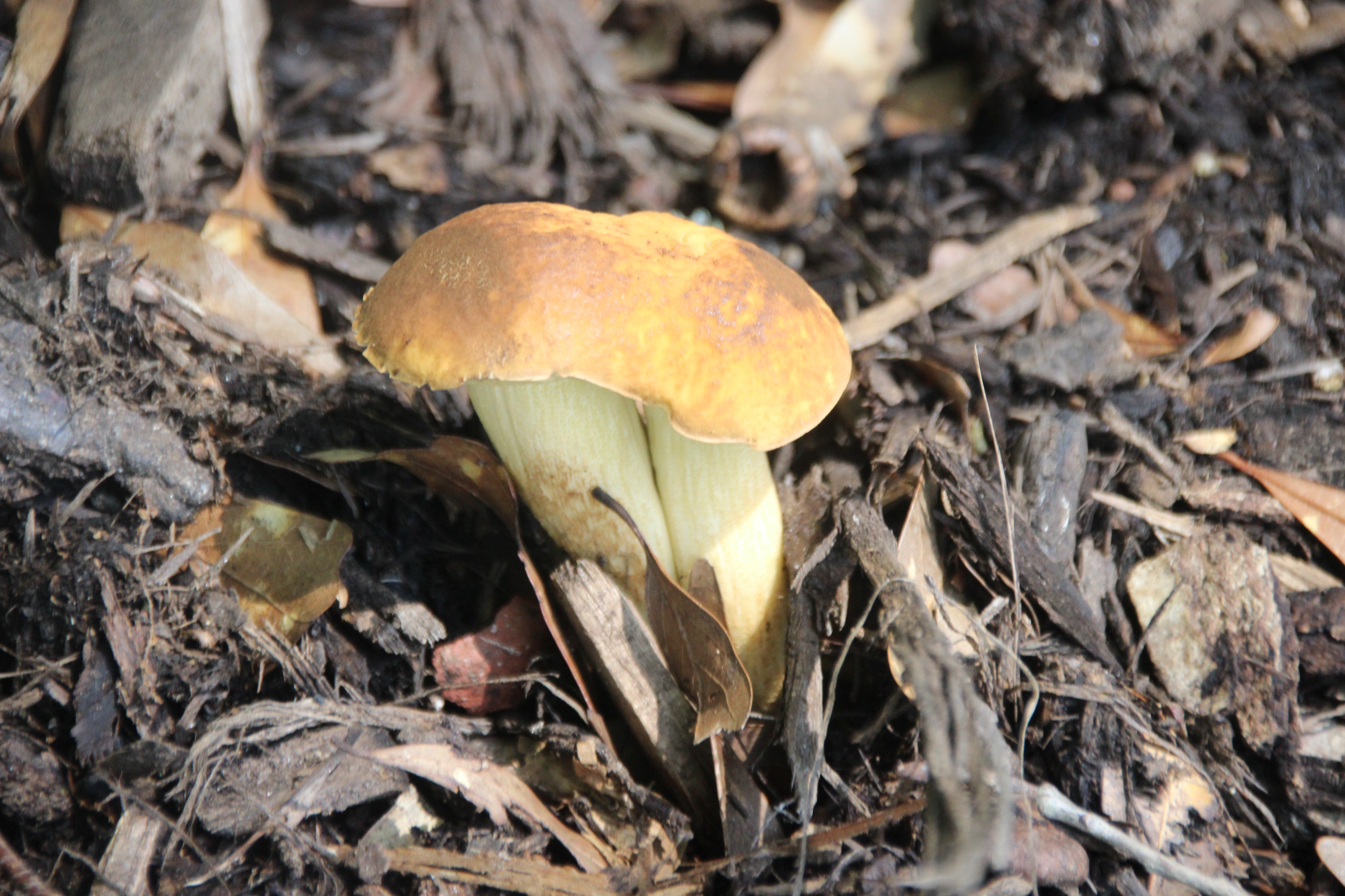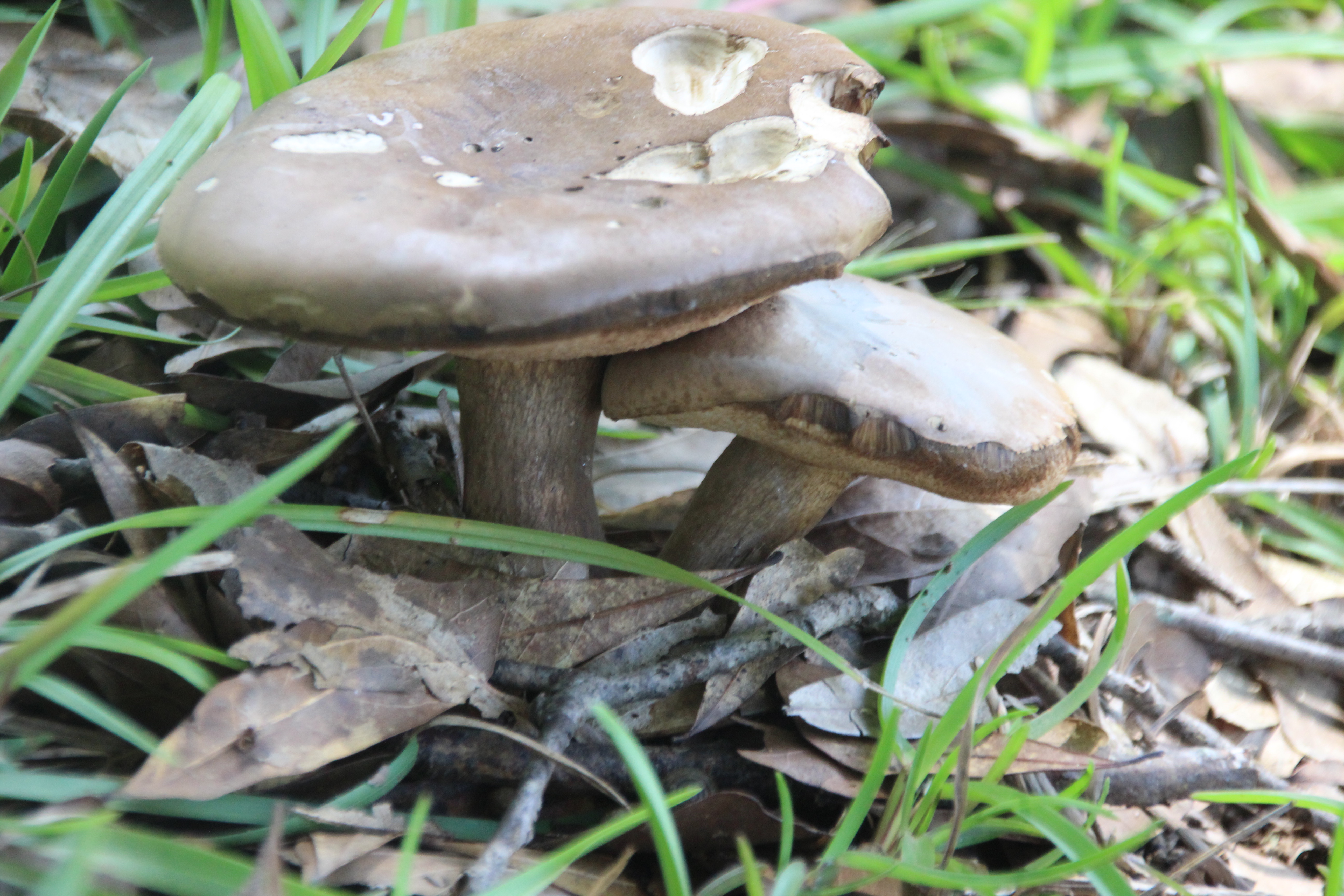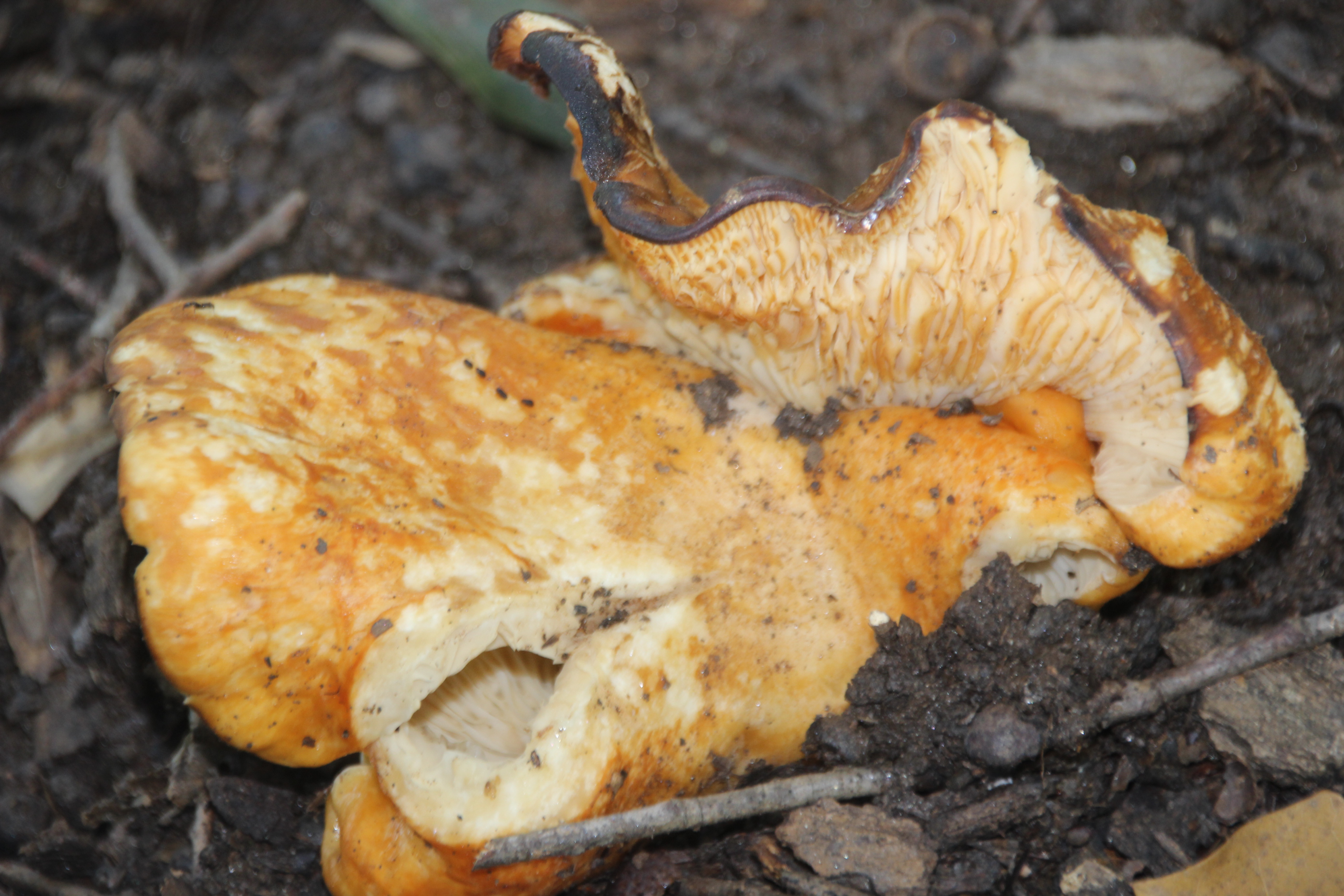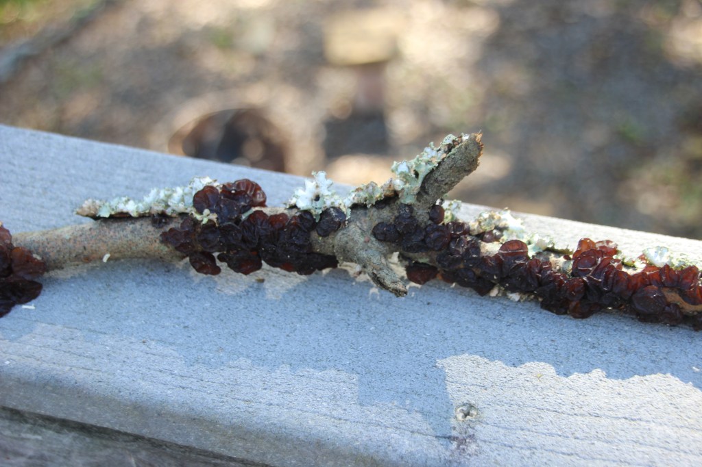 Next, a species of bracket fungi colonized in a crevasse at its base several years ago and have continually replaced several generations of fruiting bodies.