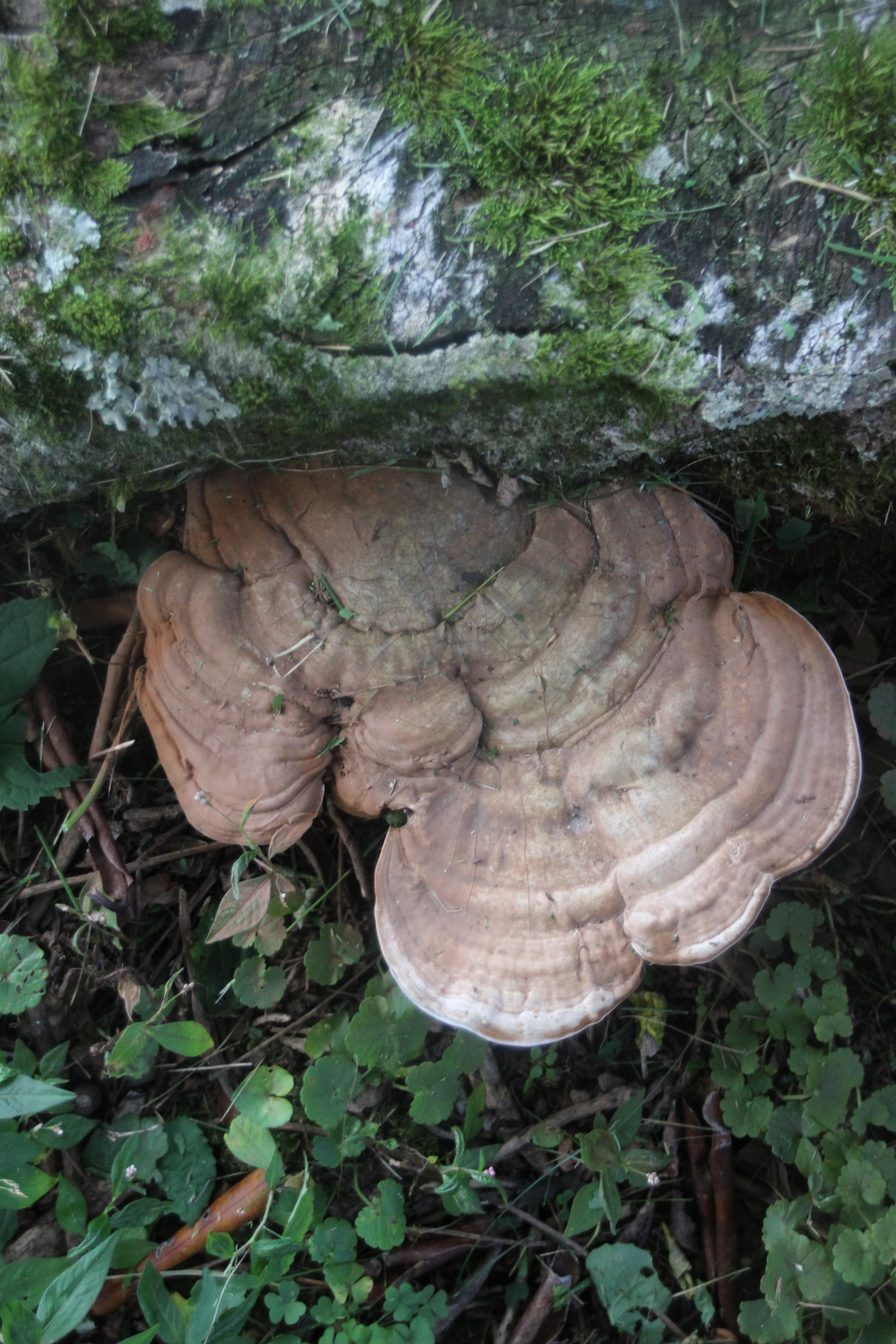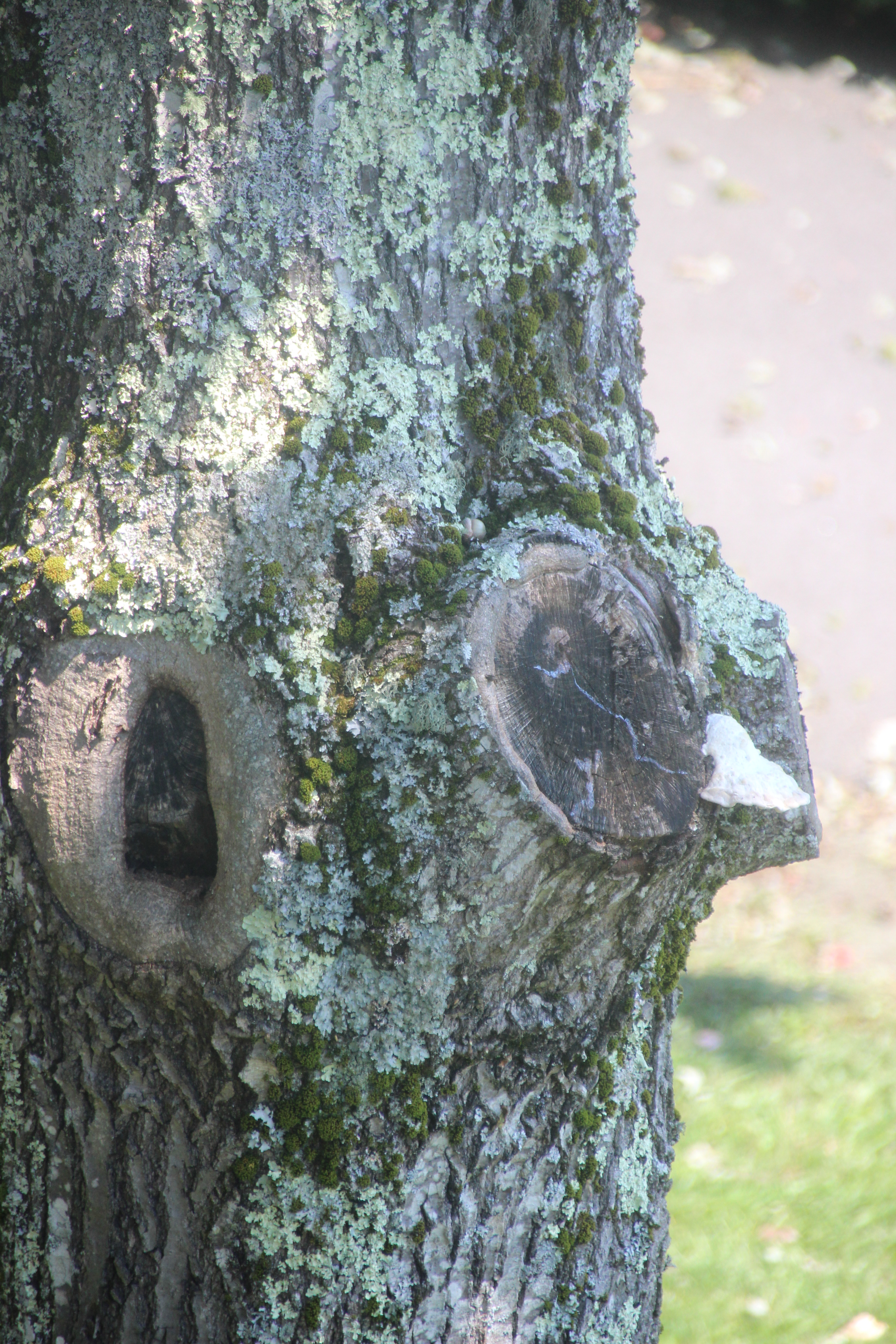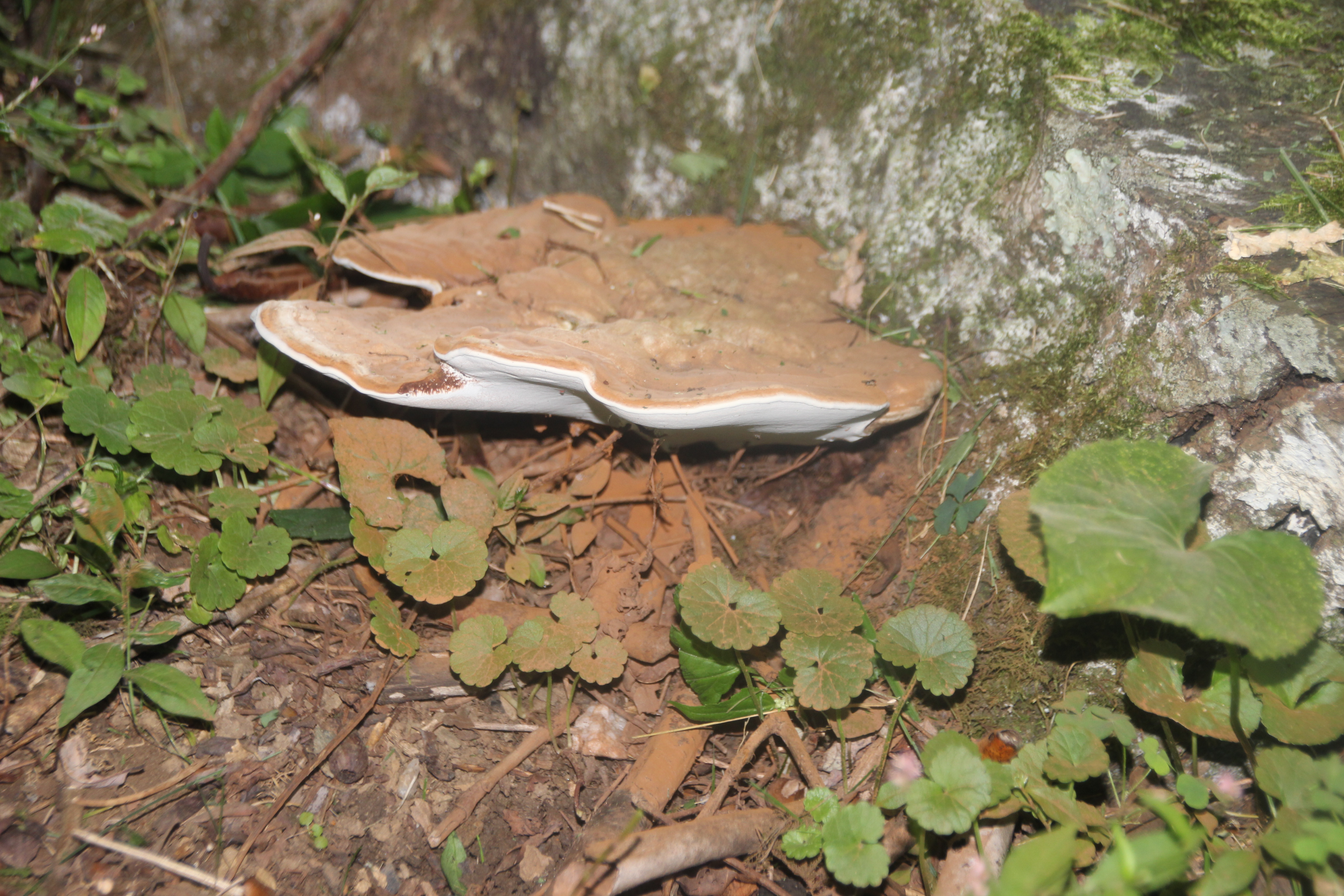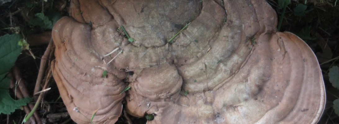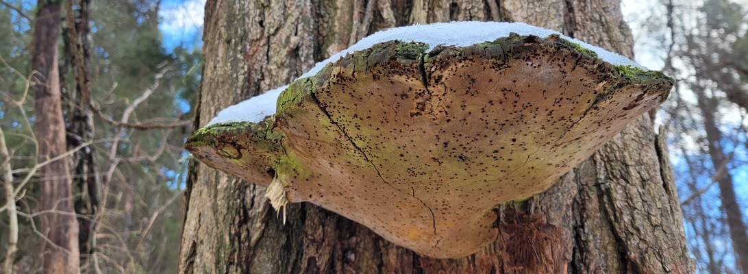 Next, a species of bracket fungi colonized in a crevasse at its base several years ago and have continually replaced several generations of fruiting bodies.