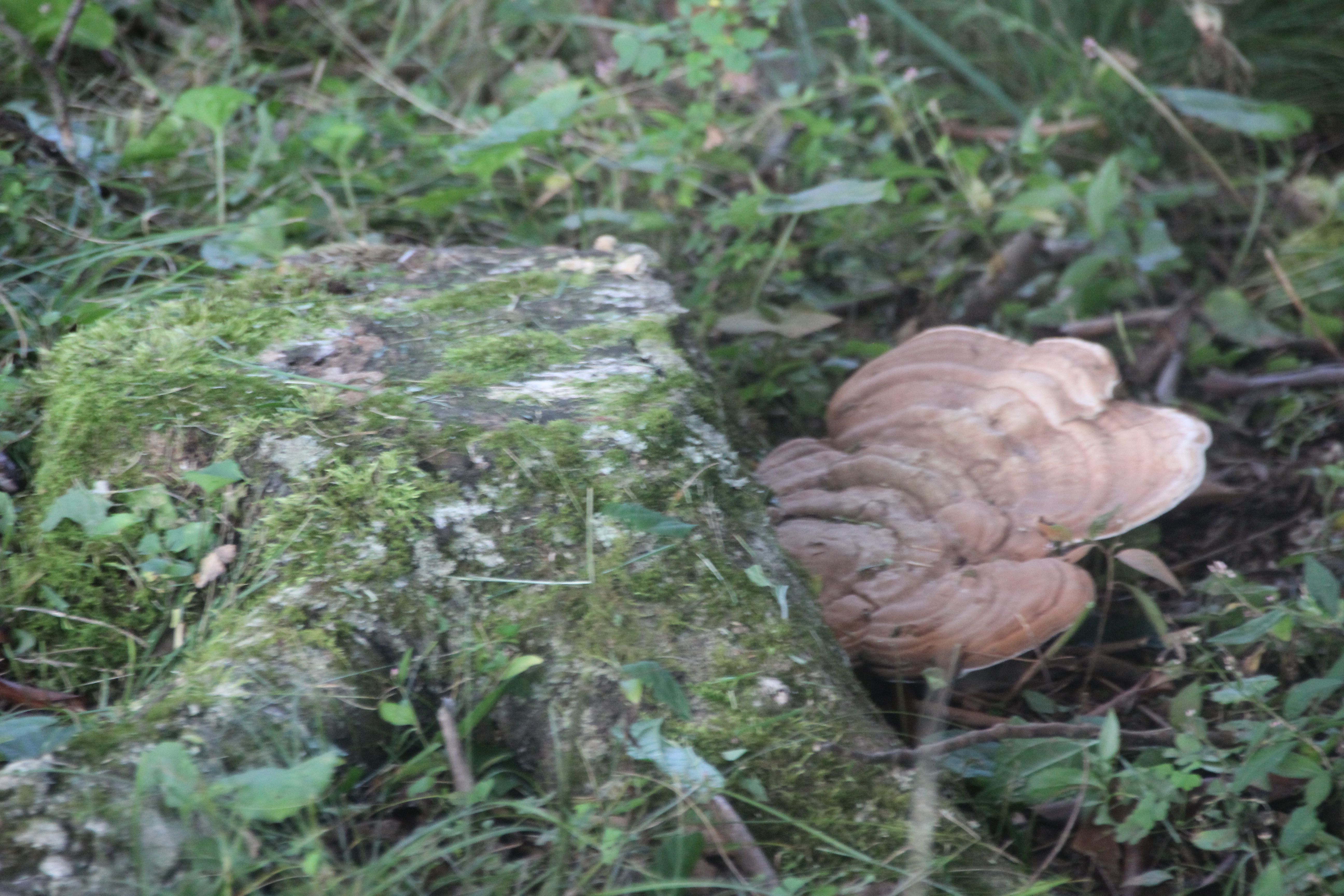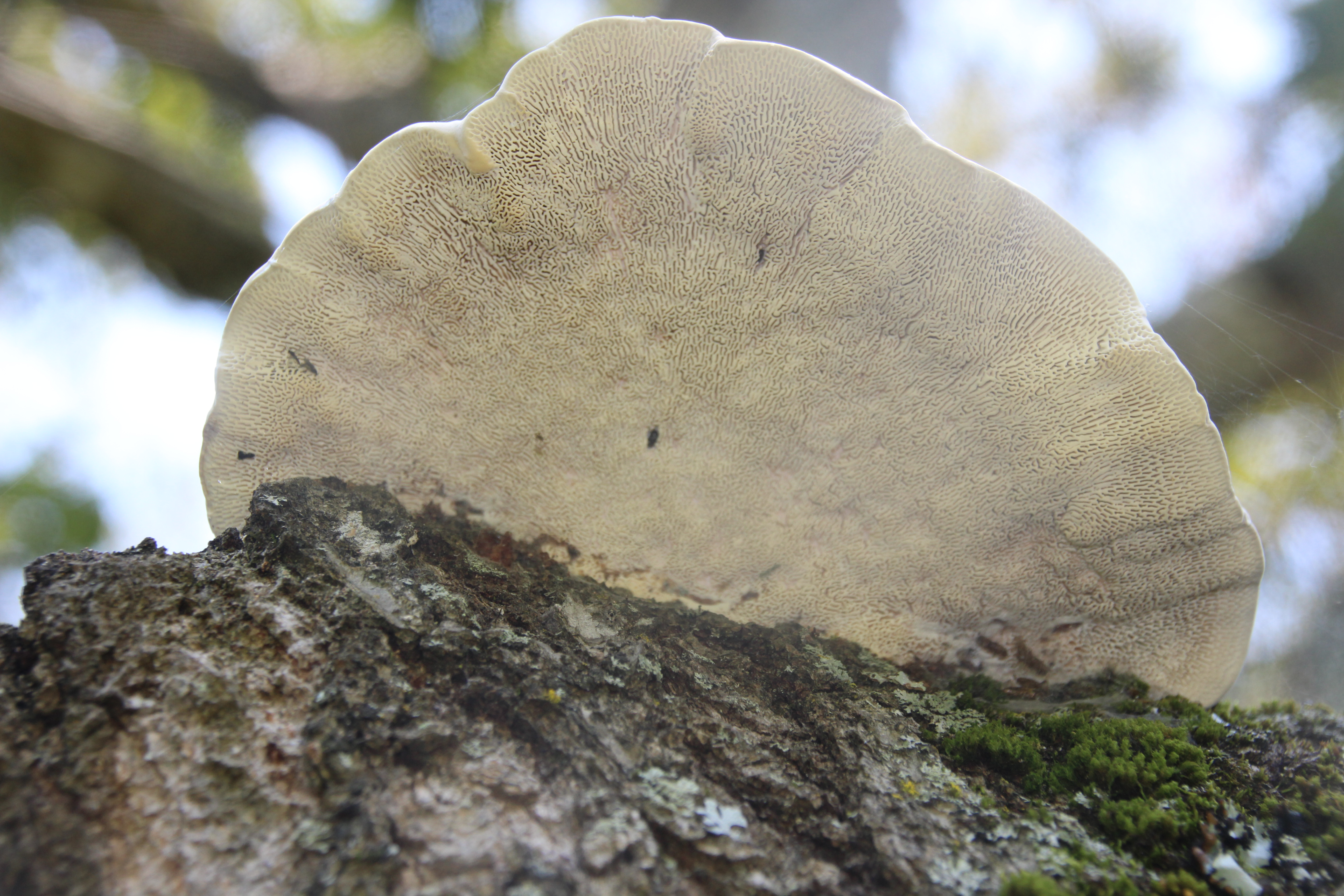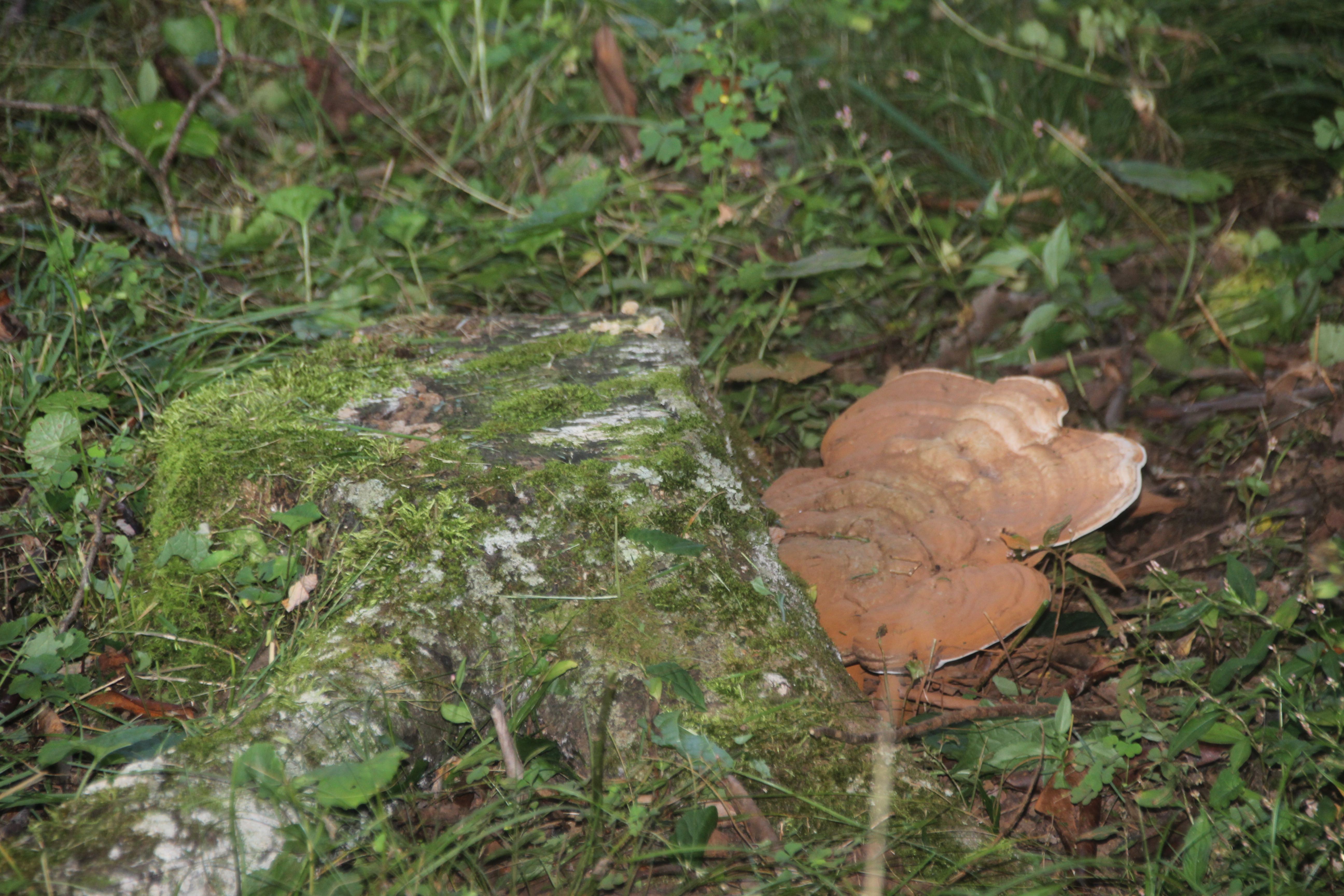 Next, a species of bracket fungi colonized in a crevasse at its base several years ago and have continually replaced several generations of fruiting bodies.