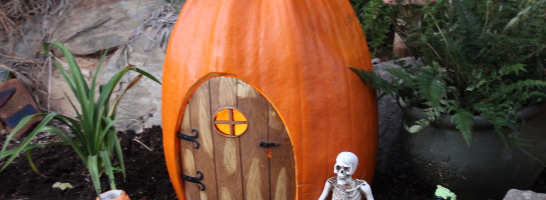 The fairies have a new hangout. Since it is fall, I carved a pumpkin just for them.
