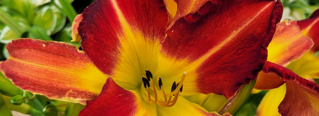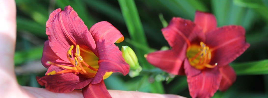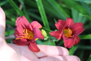 I woke up sad this morning. As I walked through the foyer and peeked out the door there was a giant daylily full of happy faces looking back at me, bright and big and beautiful.