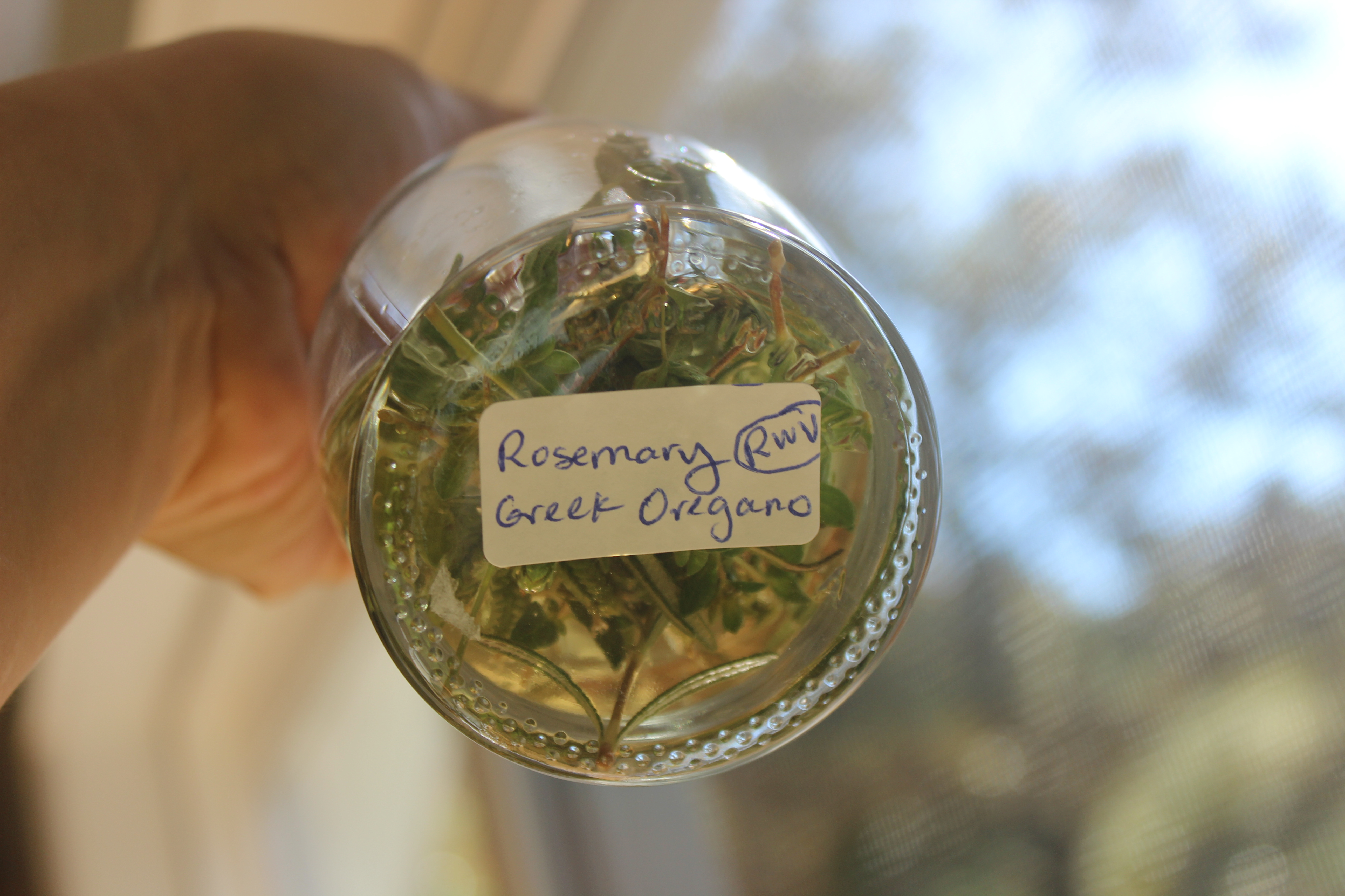 I clipped pieces and placed them in a dish to check out the aromas of the combos.