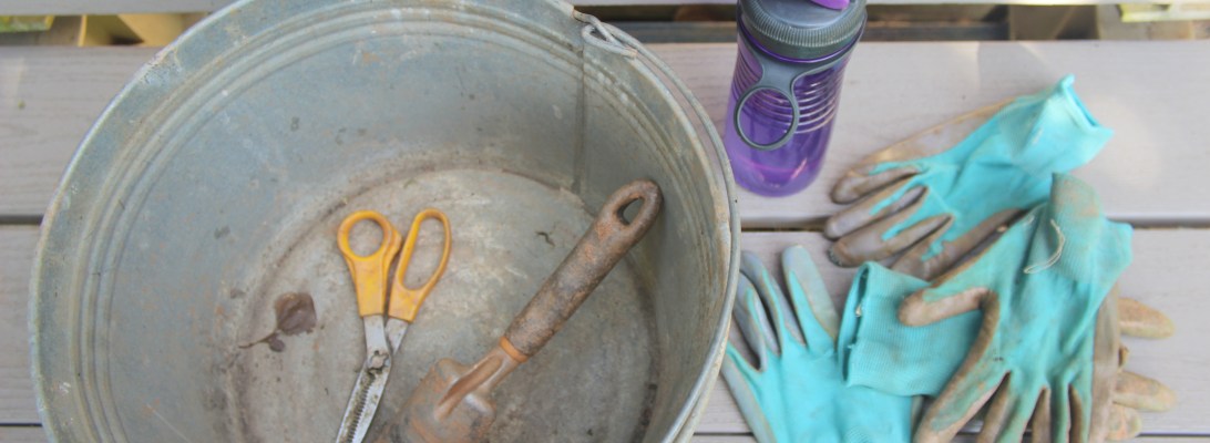 I get all my tools, bug repellent, hat , bandana scarf , gloves and bucket together.