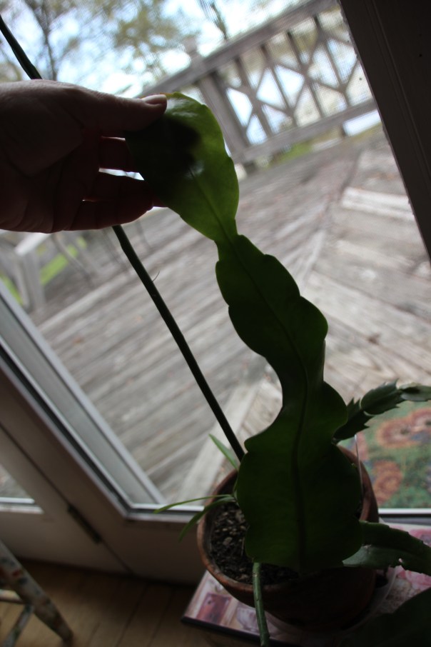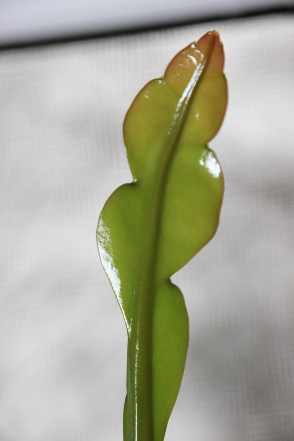 Its nickname is also Gooseneck cactus. Now I know why. One leaf decided it needed to be longer. So it added another lobe on the tip.