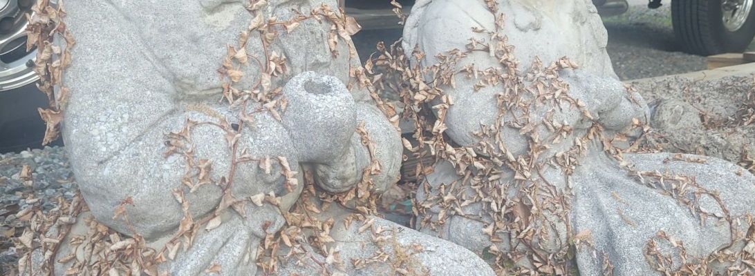 This scene you will recognize. These two statues are named Lily and Moss. I have written stories about them. Today, I will let a photo tell the story.