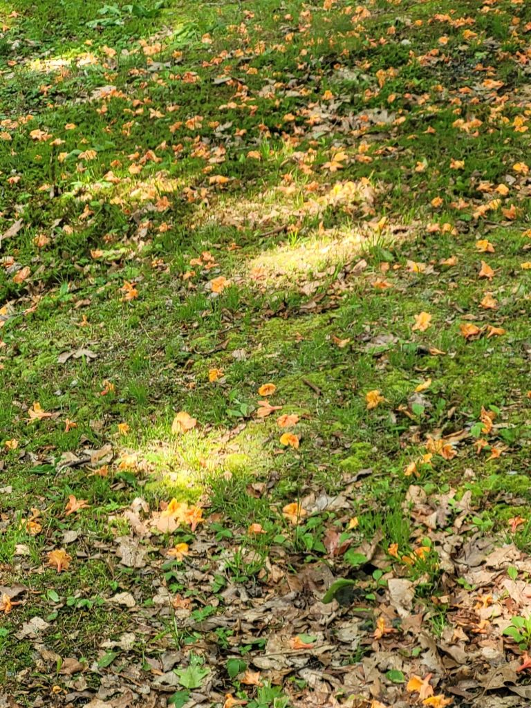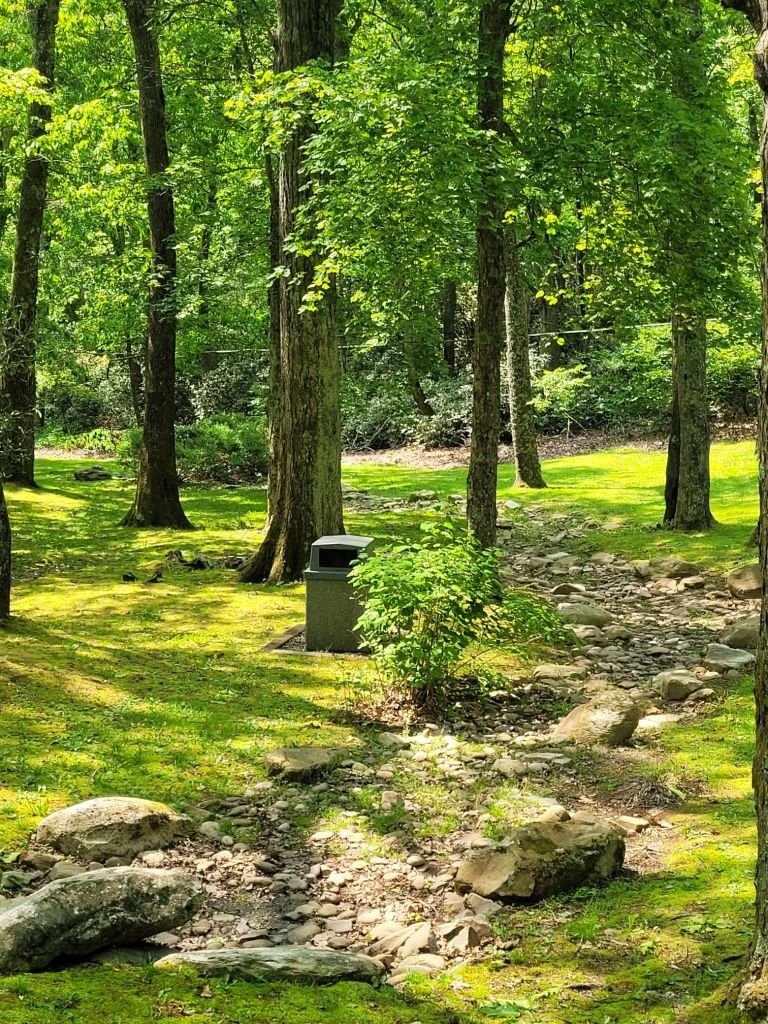There is a beautiful and peaceful spot near our house. It is close to the Blue Ridge Parkway and the Moses Cone Manor. It is shaded by tall oaks and carpeted with green moss.