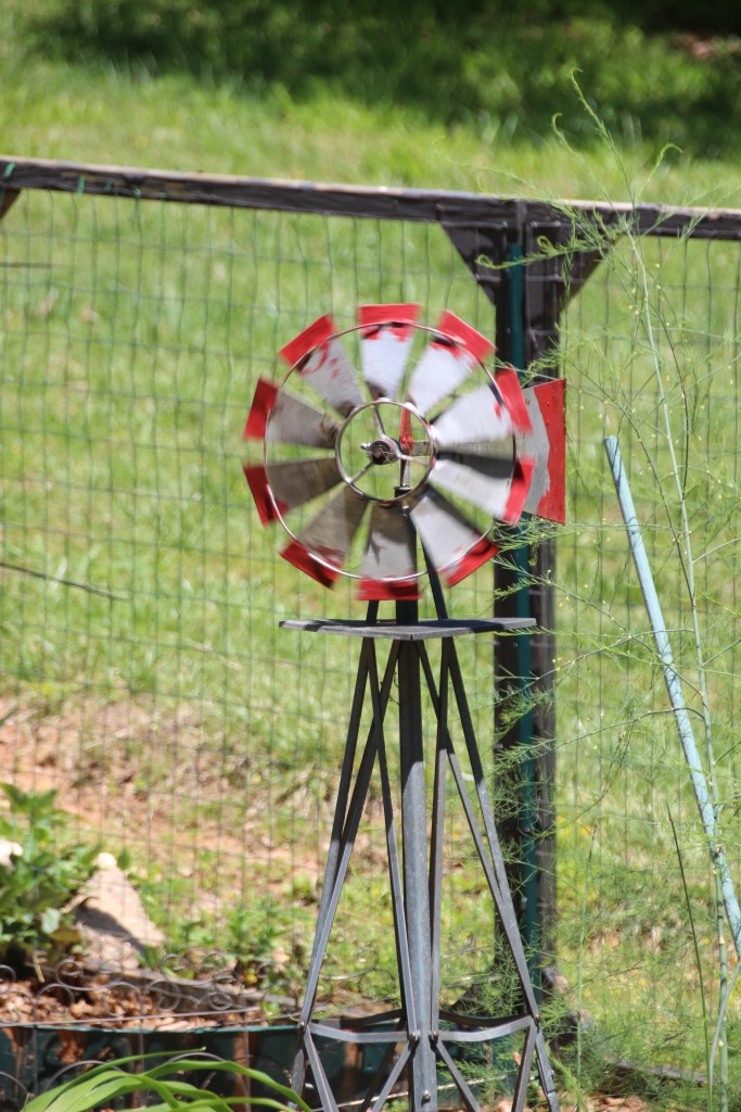 The Windmill also needs a new paint job. That will have to wait until gardening season is over. It creaks as it whirls. Maybe it will deter some deer.
