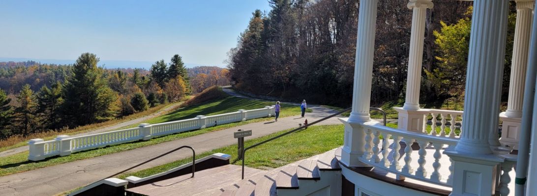 I am at one of my favorite places. The Moses Cone Estate. The house is not open but the grounds are. I am sitting on the front porch while my sis and friend go for a walk on the horse trail/ carriage road.