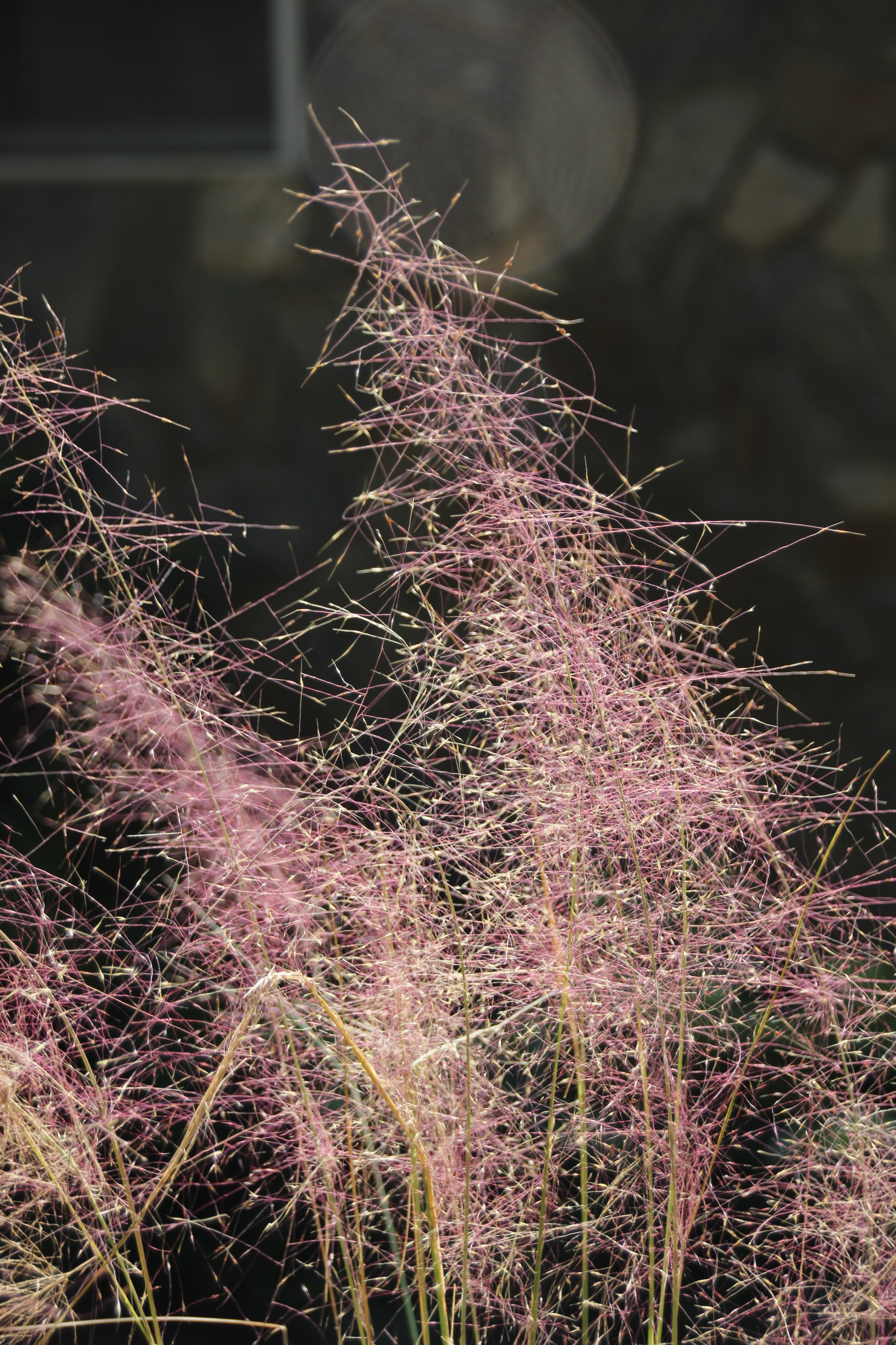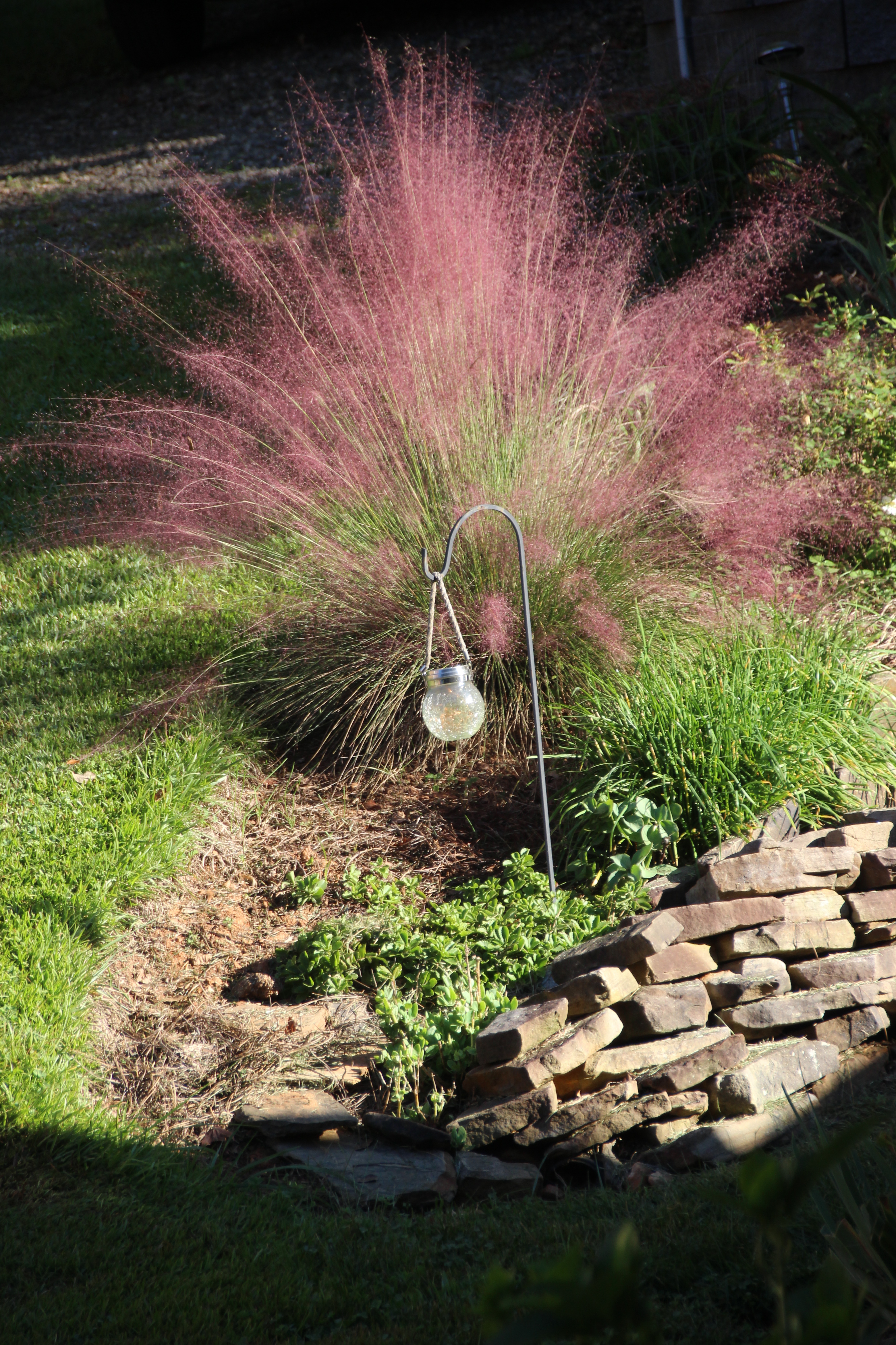 Just when I think that the garden is done, Muhlenbergia capillaris, rises up and dances in the fall sunshine.
