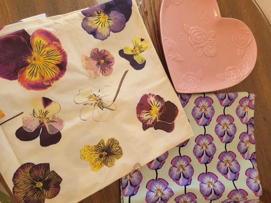 Rose and I have found pansy fabrics to use in that room. Rose even has pansy sheets for her bed in there.