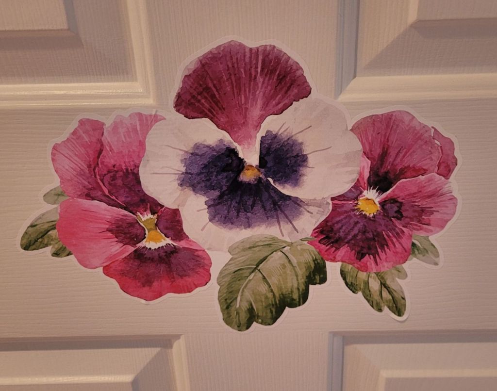 We named the bedrooms here on the mountain. Mama’s namesake is The Pansy Room. The door is marked by a big beautiful pansy sticker.