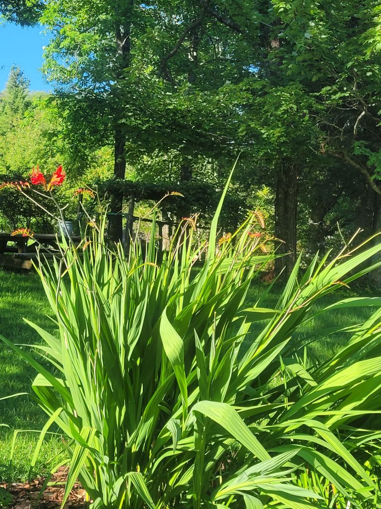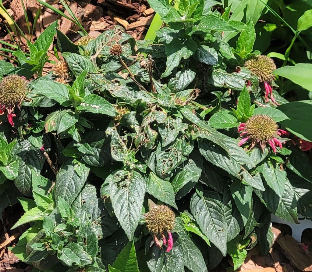 The slugs are eating the top of that pink bee balm that caused my latest hip dislocation. Talk about adding insult to injury!