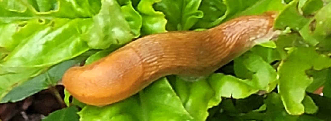 My only basil plant has been demolished. When I moved the pot, there was a slug sleep-over in progress underneath.