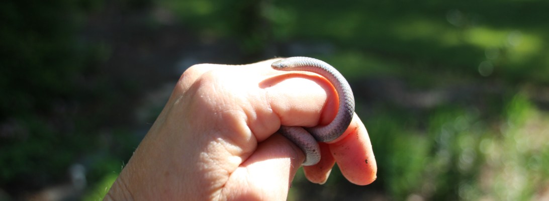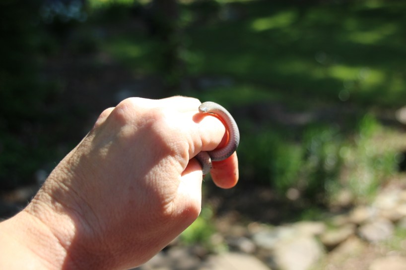 Too big for a worm . Tiny eyes, gray back, pink belly and a sharp tail.