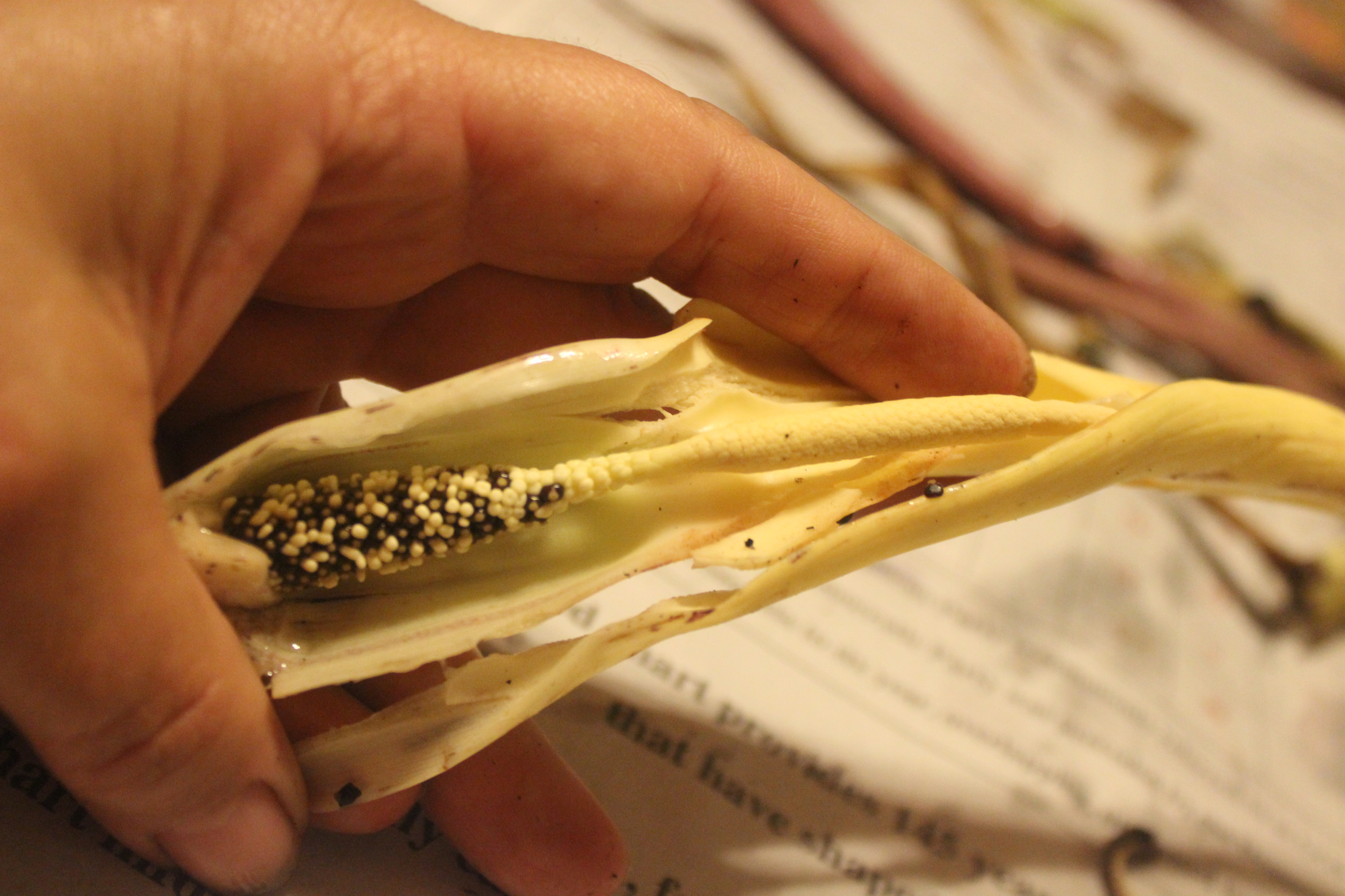 I peeled away the outer sheath/spathe to expose the floral parts.