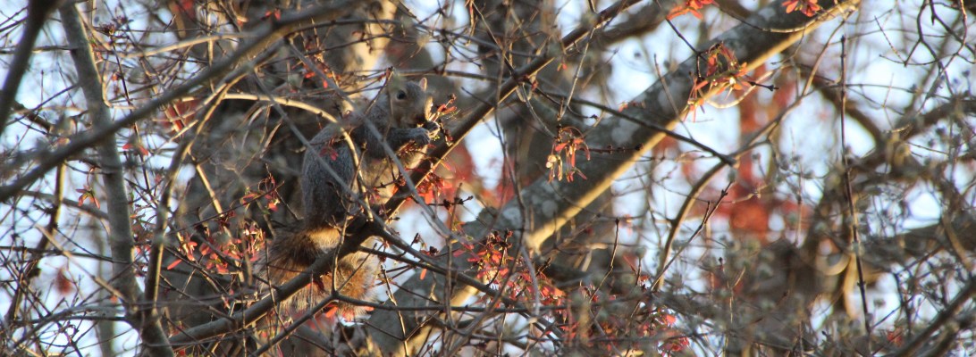 They are eating the samara fruits off the tree. These are also called whirlbirds or helicopters due to how they fly in the wind