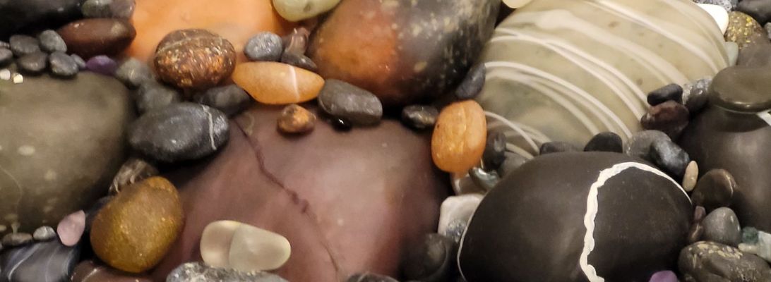 These weren’t just any rocks. These were river rock replicas made of glass by Sarah Vaughn. They looked so real, like a pile of favorite rocks on the northern shores of the Pacific.