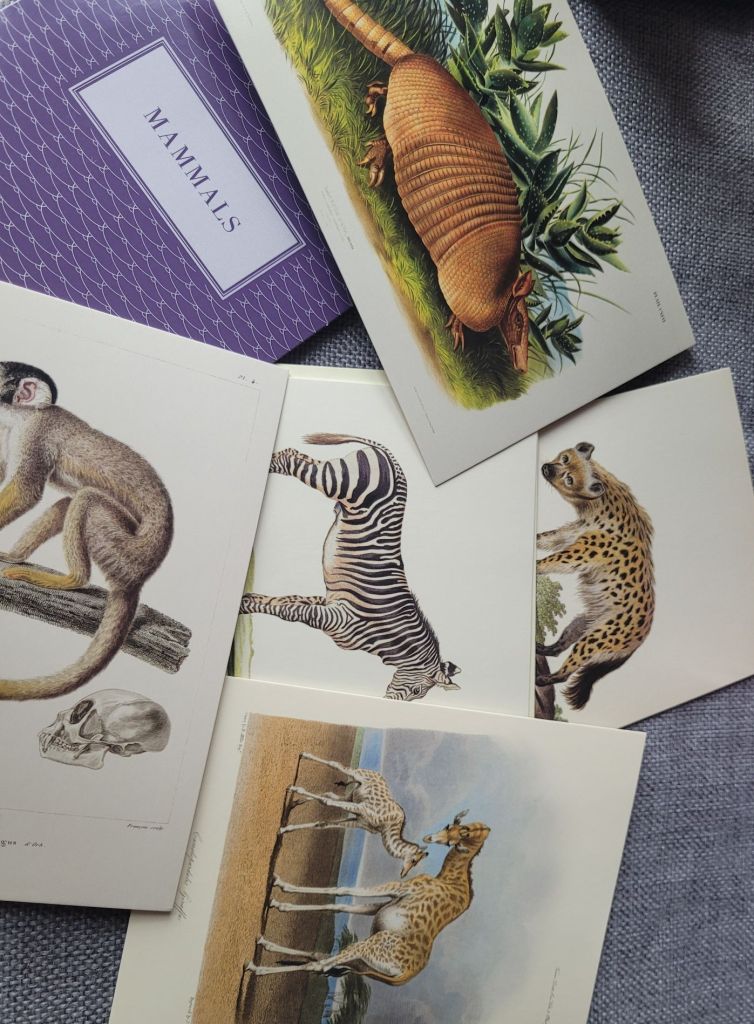 Each postcard has information on the back about the subject, artist, and location of the animal’s habitat. I love reading the descriptions because many of the animals are strange to me.
