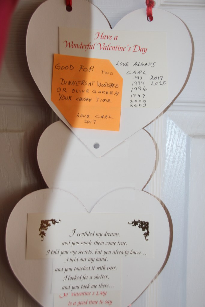 This one was my daddy’s favorite. He used it a total of eight times. He even added a promise of a dinner for two out in 2017. I wish I had taken a photo of it before dismantling it.