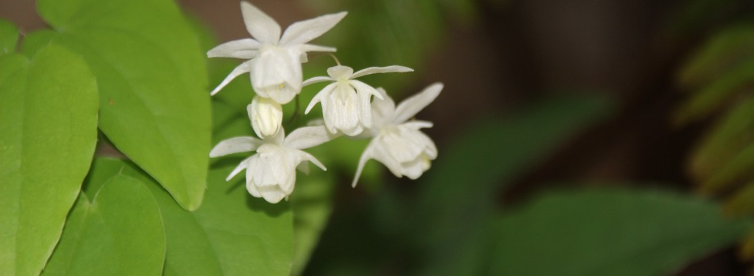 I would be a tiny, white Epimedium growing under a shrub looking out at the other crazy flowers wondering