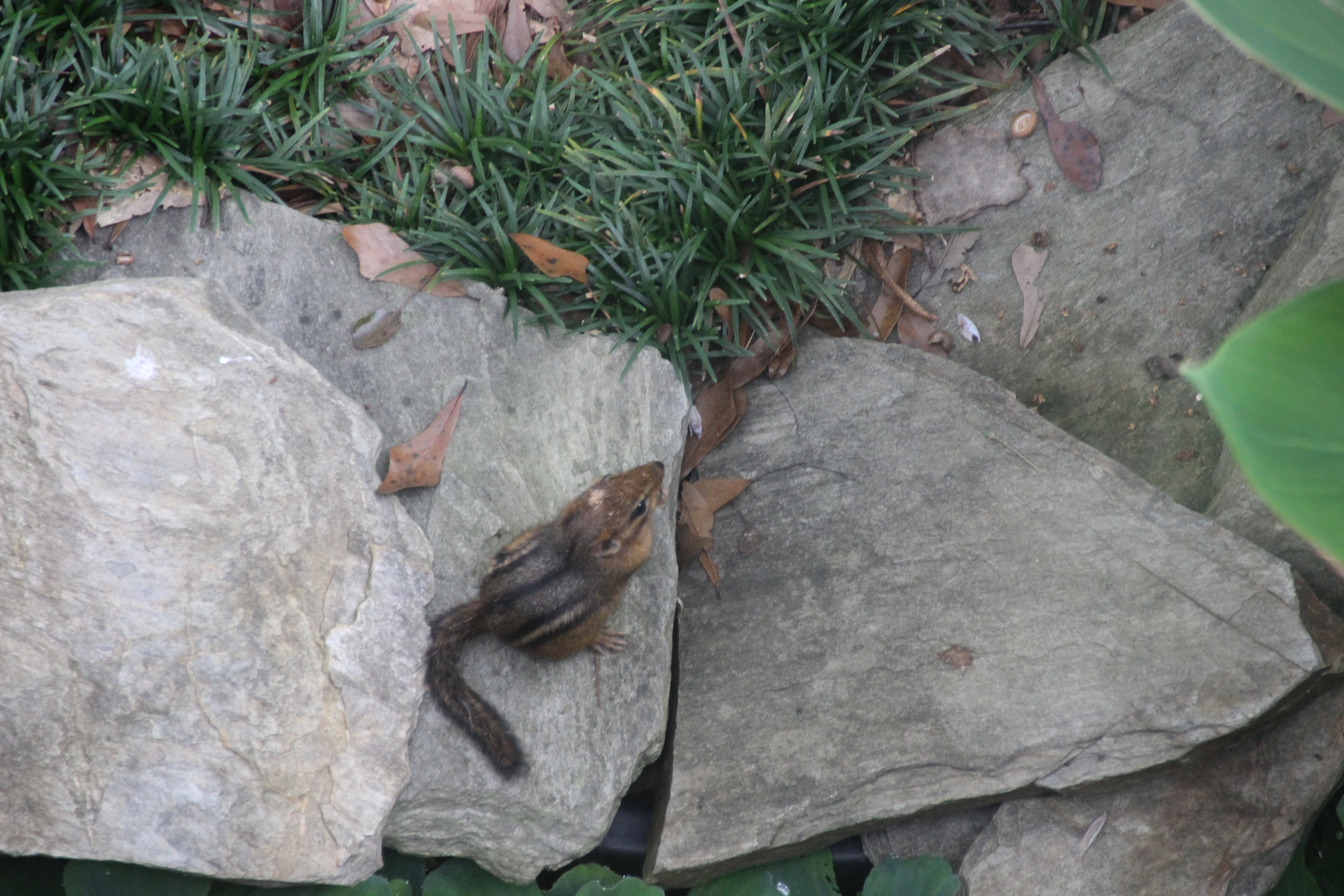 They skitter across my acorn strewn deck filling their cheeks with the best acorns. The little one looks comical with his bulging head and tiny body. I like to think that the small one is the baby I rescued from the fish pond.