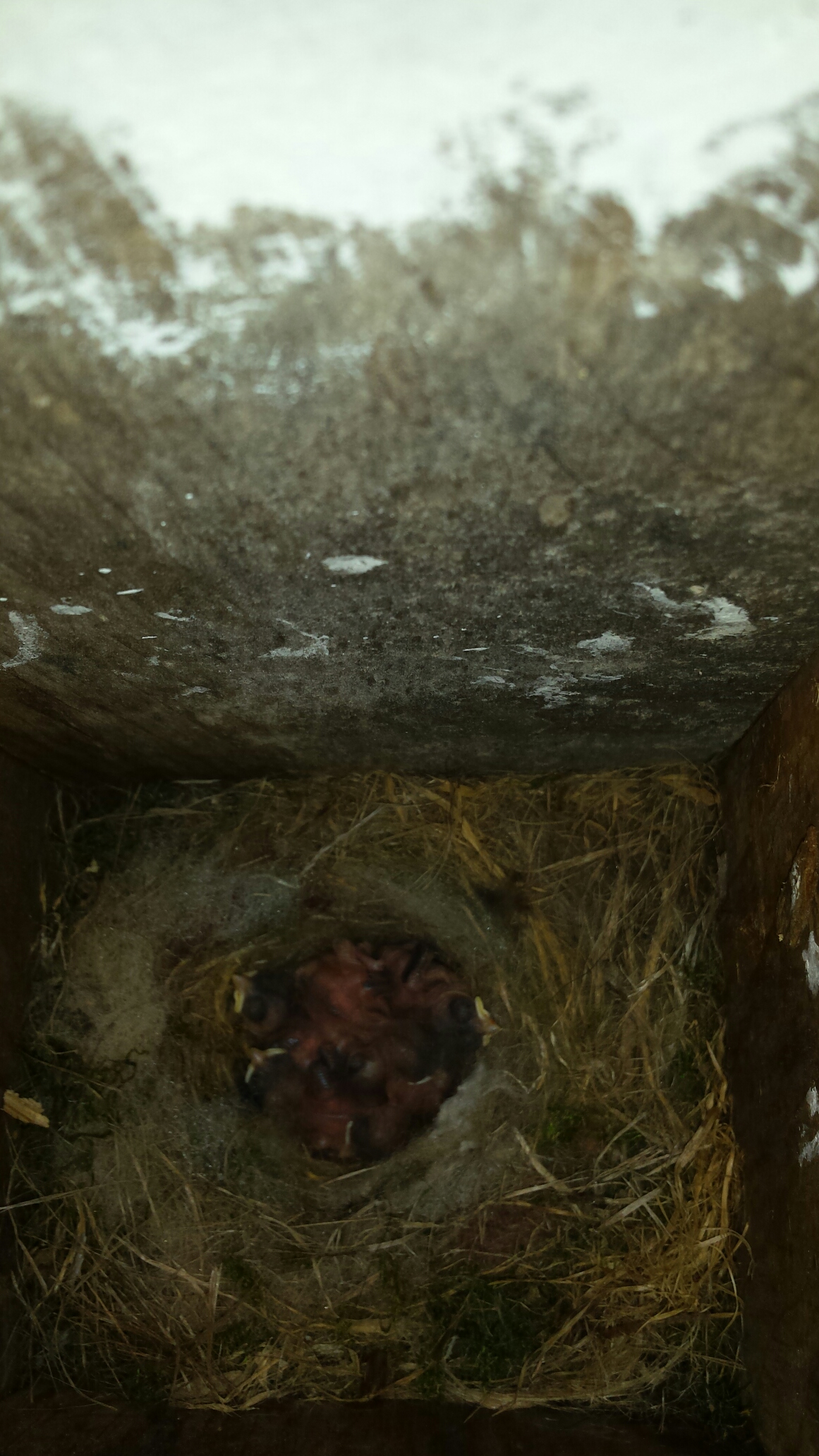 All three nests were in birdhouses connected to the deck on my home. They are the standard bluebird type houses.