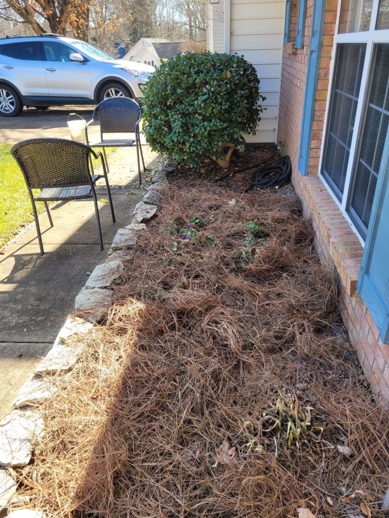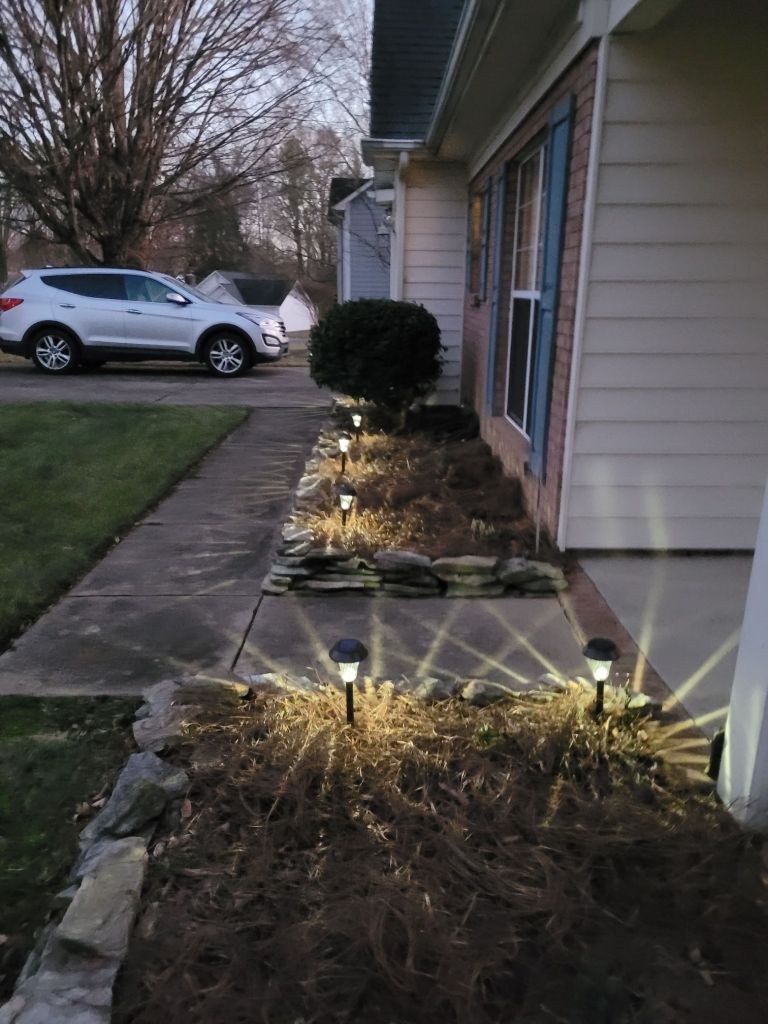 I am working in my sister’s yard today. She needed some cleaning up and mulching before adding solar lights along her walkway.