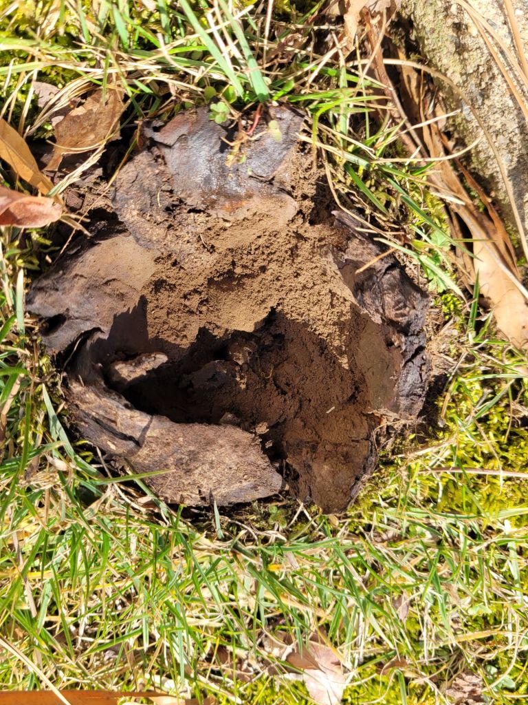 I found some fungi under her piles of pine needles. They released spores that looked like cocoa powered.
