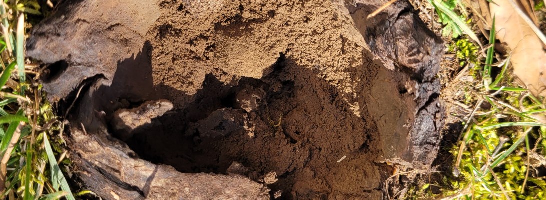 I found some fungi under her piles of pine needles. They released spores that looked like cocoa powered.