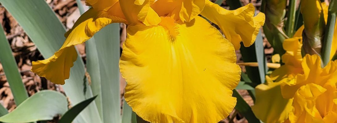This bearded iris is named BANANA FRAPPE’. It’s blooms glow in the afternoon sun.