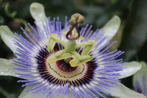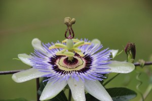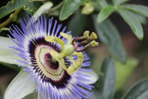 I love vines and I love purple. I did not plan this combination. Nature planted the morning glories. The Passion Vine is a hybrid called ‘Blue Crown.’ A hybrid is a mix of two different strains.