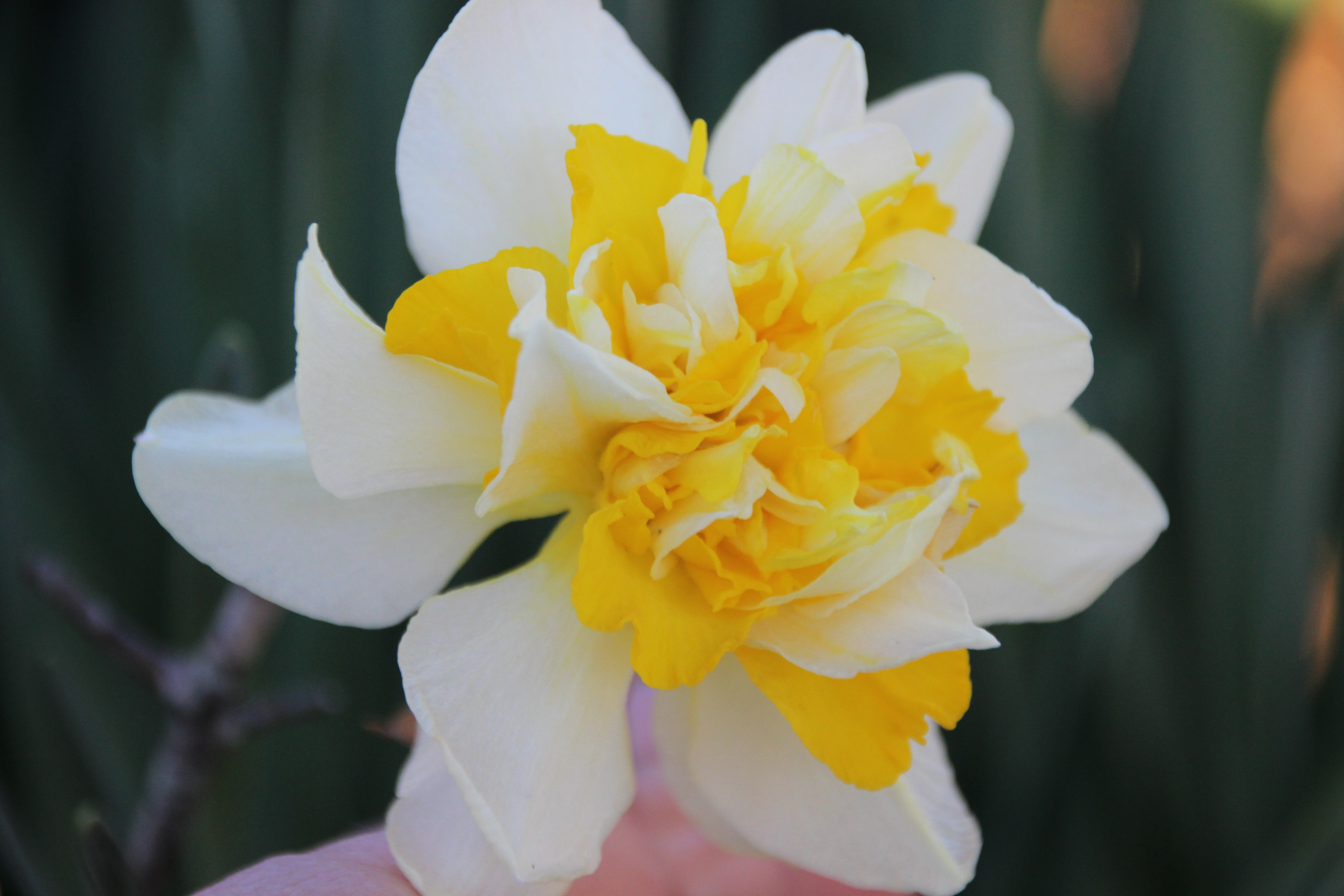 It is a miniature Narcissus. Its name comes from the fact that many stems have two flowers.