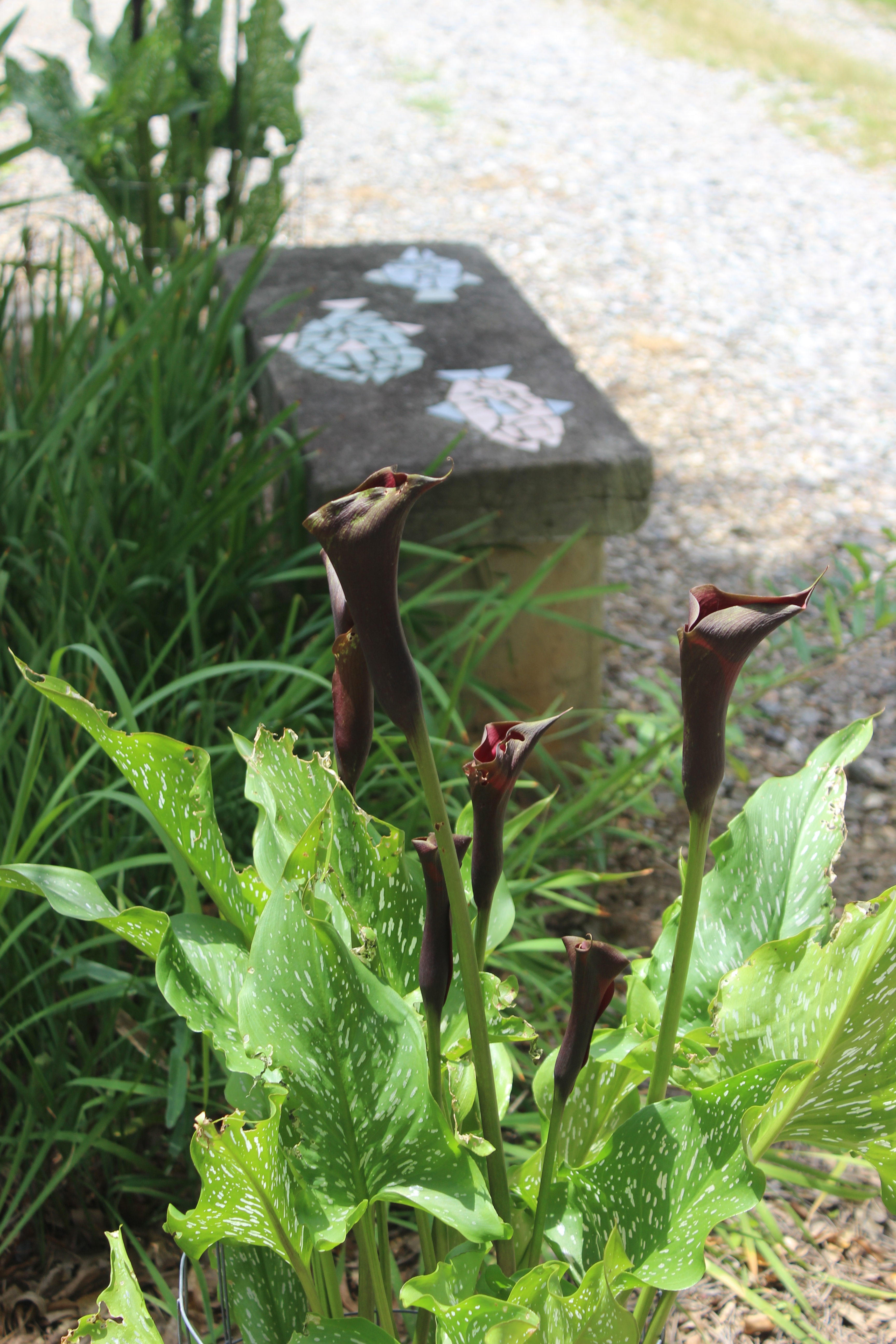This group has slowly spread over the years to form a lovely display. The plants have lost some of their color because they are not in full sun. I will eventually move the perimeter plants to a sunnier location to regain the burgundy spots.