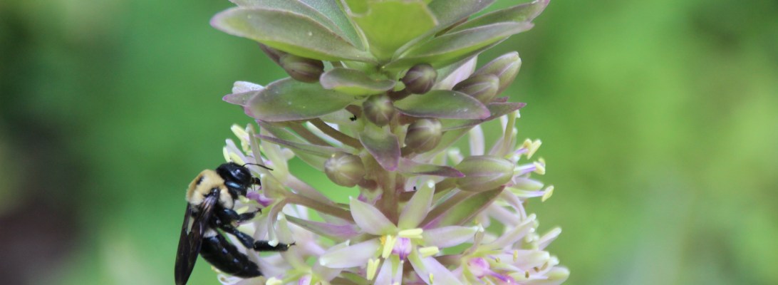 I can pretend I am on a tropical island when the Eucomis flowers bloom.